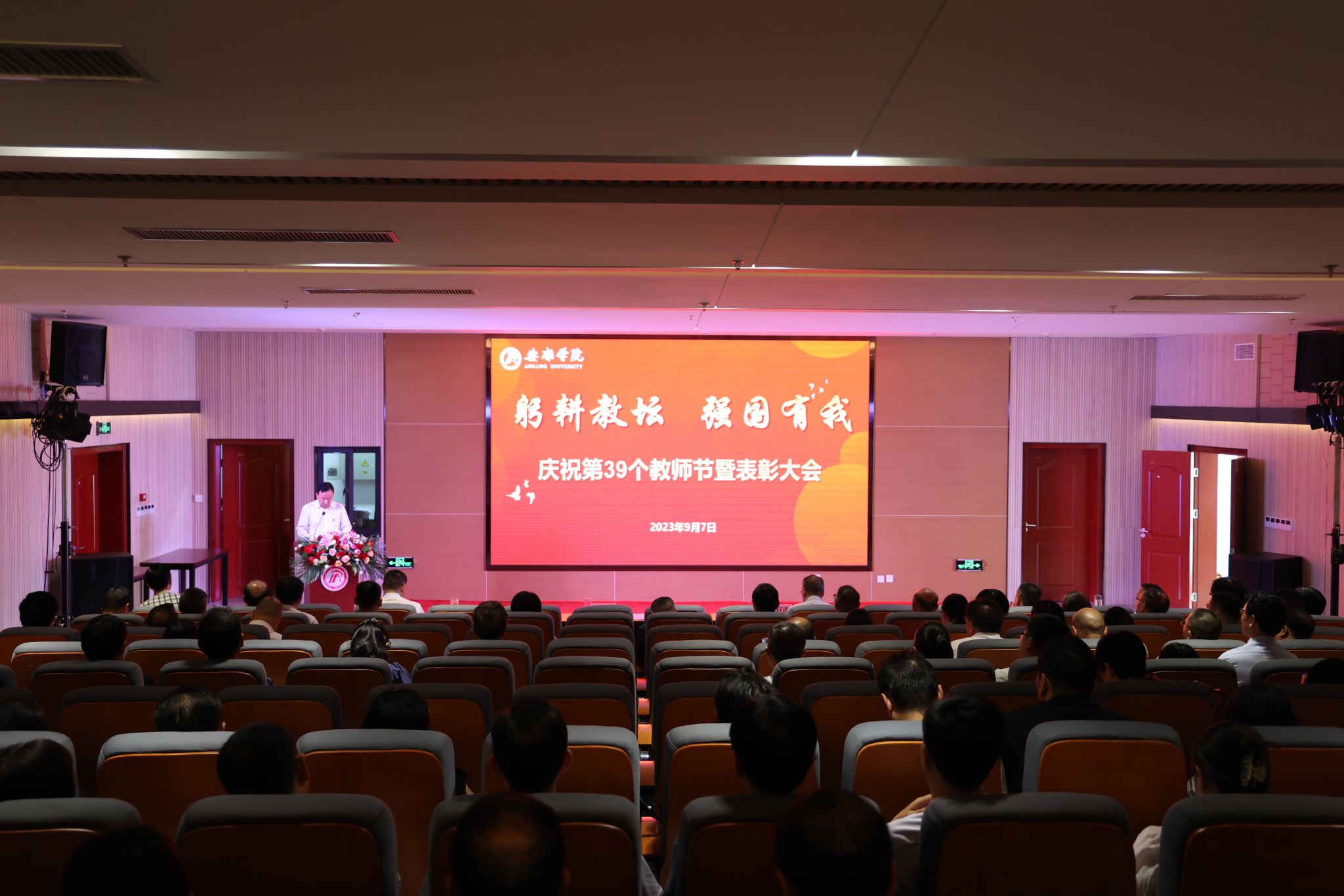 会上,丁巨涛代表学校向辛勤耕耘在教学、科研和管理服务一线的教职工,以及离退休职工致以节日问候,向新加入安康学院大家庭的71名教师表示诚挚的欢迎!向受到表彰的先进集体和个人表示热烈的祝贺!他从坚持立德树人根本任务、做践行高尚师德的典范,爱岗敬业、提升人才培养、科学研究和服务社会能力,持续强化服务保障、进一步彰显教师中心地位,对标目标任务抓落实、推动学校事业发展再上新台阶四个方面对如何做一名新时代高校好教师、如何尊重和服务教师提出了要求。