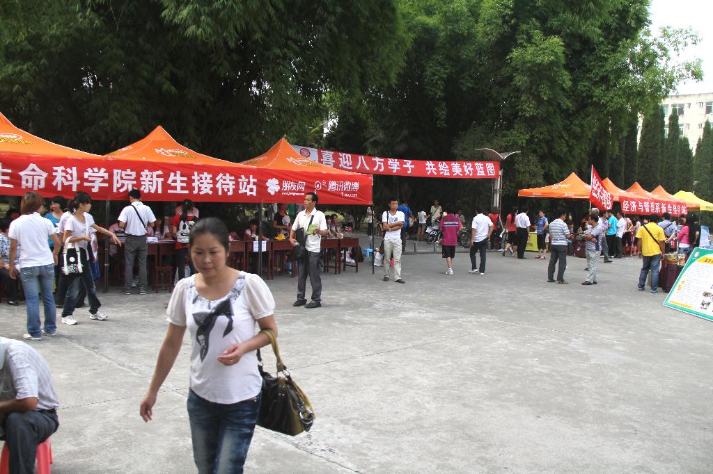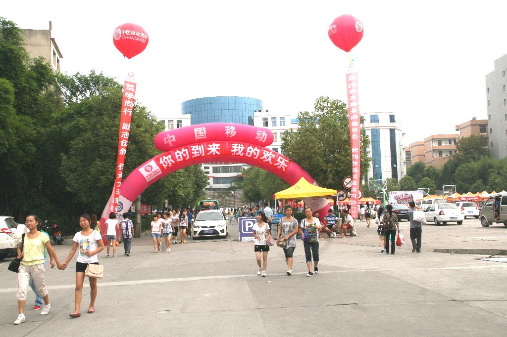 彩球飞扬,横幅高挂,校园弥漫着喜迎新生的热烈气氛。“相约安康,放飞梦想”、“你的到来,我的欢乐”、“接过你的行囊,我们就是一家人”等热情洋溢的条幅,让人温馨。“报到指南”、“校园平面图”、“明白卡”等让报到流程一目了然,“新生咨询处”、“绿色通道”、“医疗服务站”、“家长休息区”等给新生和家长提供了极大的方便。