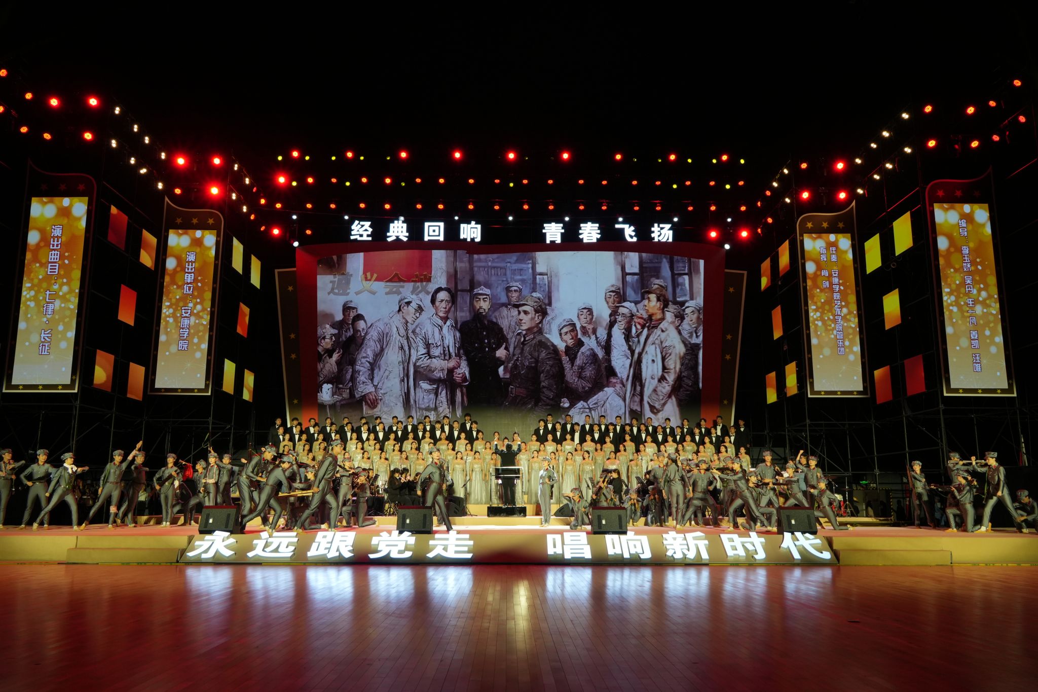 我校艺术学院合唱团、舞蹈团、管乐团270名学生共同参加了本次展演,展演活动中,大家紧密配合,演唱激昂而有张力,舞蹈热情而有活力,其中曲目《七律·长征》获得展演最高分,荣获“最佳表演奖”。此次展演充分展现了我校音乐学专业全面综合育人的成果,也是一次青年学生一心向党、淬炼思想跟党走的实践活动。艺术学院将砥砺奋进、再接再厉,不断聚力立德树人,推进应用型人才培养质量再上新台阶。
