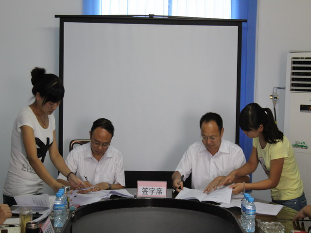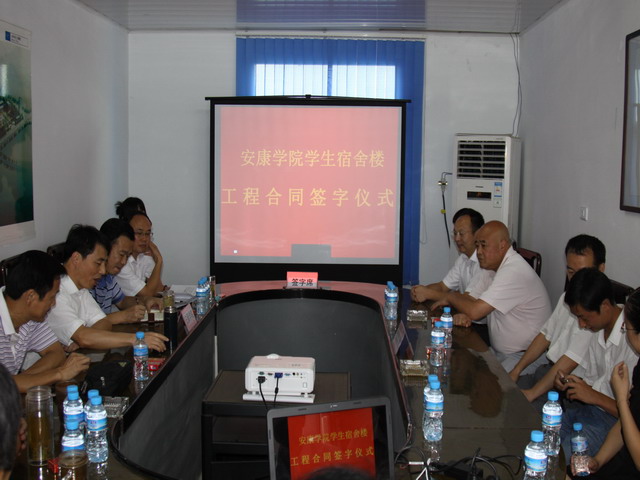 受王兴林院长委托,杨行玉代表学院与安康城市建设开发集团工程建设有限公司总经理邹林安先生在建设合同上签字。