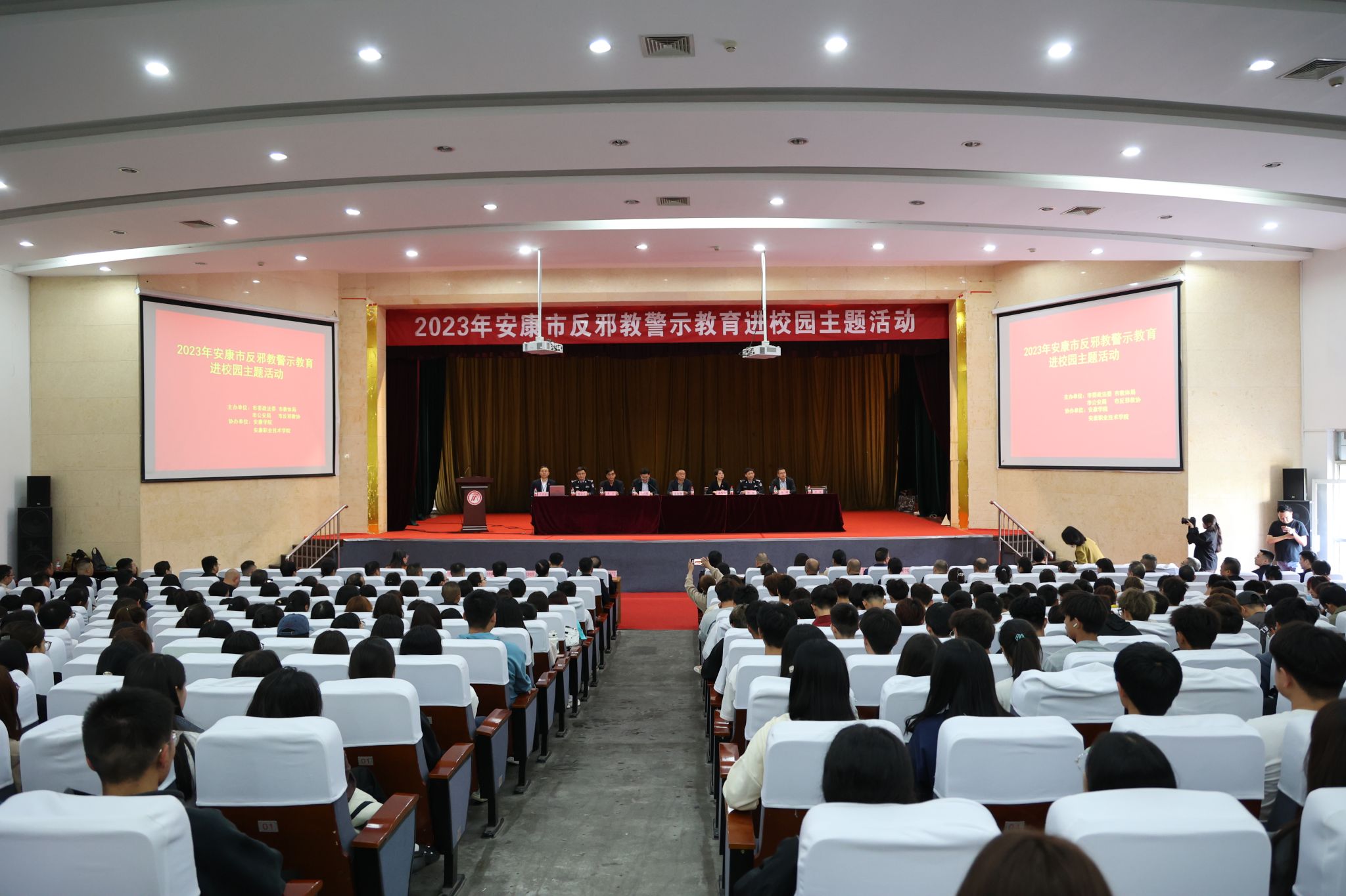 10月13日下午,“全市反邪教警示教育进校园主题活动”在我校举行。安康市委政法委、市教体局、市公安局和市反邪教协会、安康学院、安康职业技术学院相关负责同志、公安干警代表,育才社区、北门社区群众代表、市反邪教协会会员代表和师生代表共计700余人参加活动。