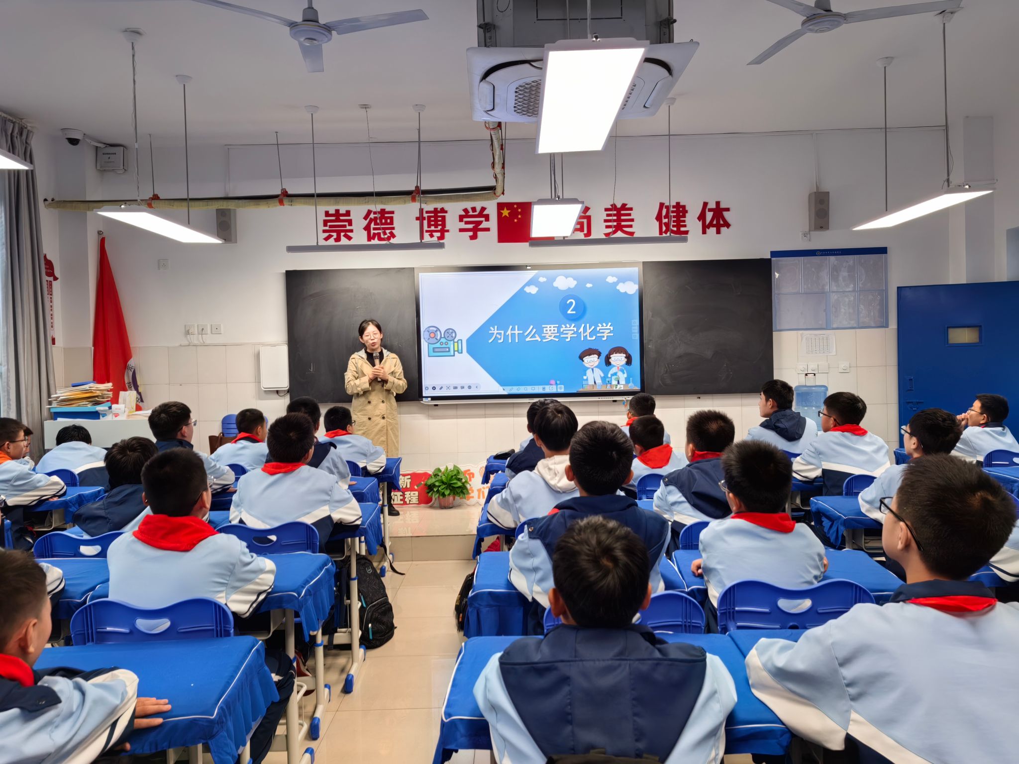 近日,我校化学化工学院“化学之光”科普团受邀来到汉滨初级中学开展科普宣讲进校园活动。汉滨初级中学大桥路校区领导、七年级50余名师生参加本次活动。本次活动由汉滨初级中学大桥路校区执行校长全东主持。