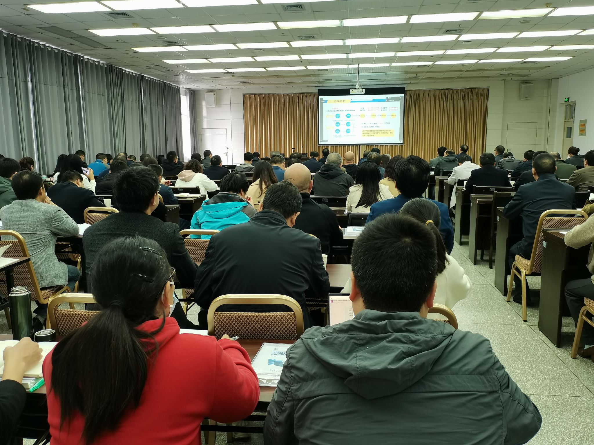 本次培训会邀请了衢州学院教务处处长、教学质量监控与评估中心主任林峰教授作题为《以评促强、特色发展,全面推进高质量本科教育》的辅导报告。林峰教授从审核评估精髓要义方面介绍了审核评估的新背景、新要求、新目标、新变化;讲解了评估指标体系内涵和评估重点;结合衢州学院评建工作实践,分享了审核评估各阶段工作的体会与感悟。培训内容全面系统,对我校审核评估自评自建工作具有重要指导意义。