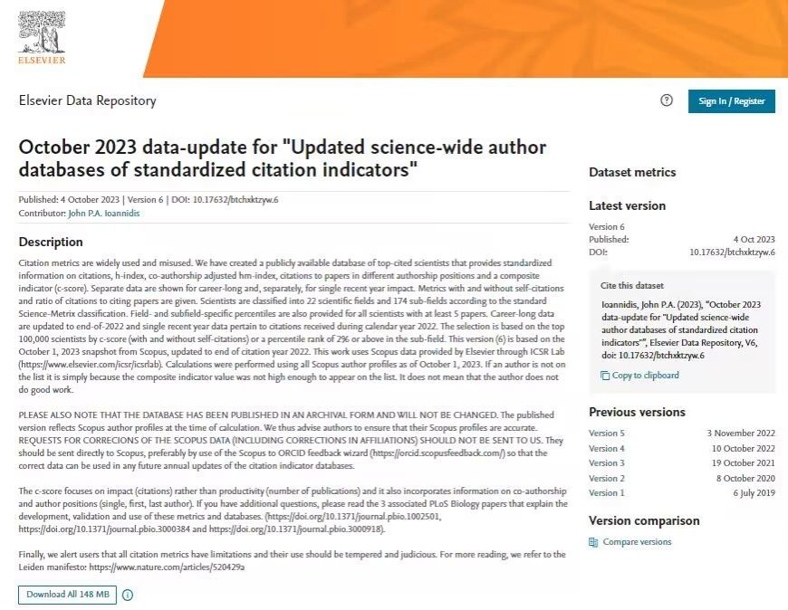 据悉,全球前2%顶尖科学家榜单由斯坦福大学联合国际权威学术出版社爱思唯尔发布,该榜单以Scopus数据库为依据,基于学者研究成果的引用次数H因子、Hm因子等综合指标,按照“生涯影响力”和“年度影响力”从全球科学家中遴选出世界排名前2%的科学家,涵盖数学、物理学、材料化学、化学、信息与通信工程、药学等22个领域和176个子领域。榜单数据为全球学术界提供了一个面向科学家长期科研表现的衡量指标,能够更客观、更真实地反映科学家的影响力。入选榜单,意味着该学者在其研究领域具有较高的世界影响力。