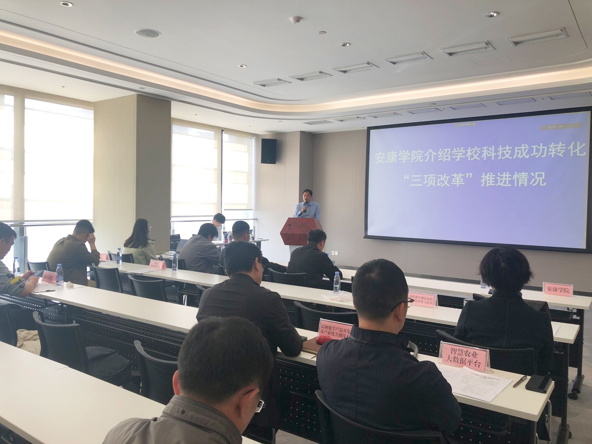 活动现场,我校科研处副处长黎欢吉介绍了学校近年来科技成果转化“三项改革”推进情况,秦创原创新促进中心代表讲解了秦创原总窗口项目落地相关政策,秦创原发展股份有限公司代表介绍了公司为科研团队提供的相关服务情况。