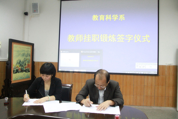 为贯彻安康学院提高人才培养质量,服务基础教育的办学宗旨,依据《安康学院青年教师素质提升工程》和《安康学院“三大科技创新与服务”工程实施方案》文件精神,不断提高青年教师的行业实践经验,促进教育教学质量的提高和学科专业建设。依据协议,教育科学系选派青年教师李支其、李鹏赴汉滨区果园小学、汉滨区幼儿园分别担任校长助理、园长助理职务,在小学、幼儿园以挂职职务身份开展为期一年的工作;挂职期间,协助小学、幼儿园做好相关管理工作,参与观摩教学、教师教研或科研活动,积极配合开展教师相关业务培训。