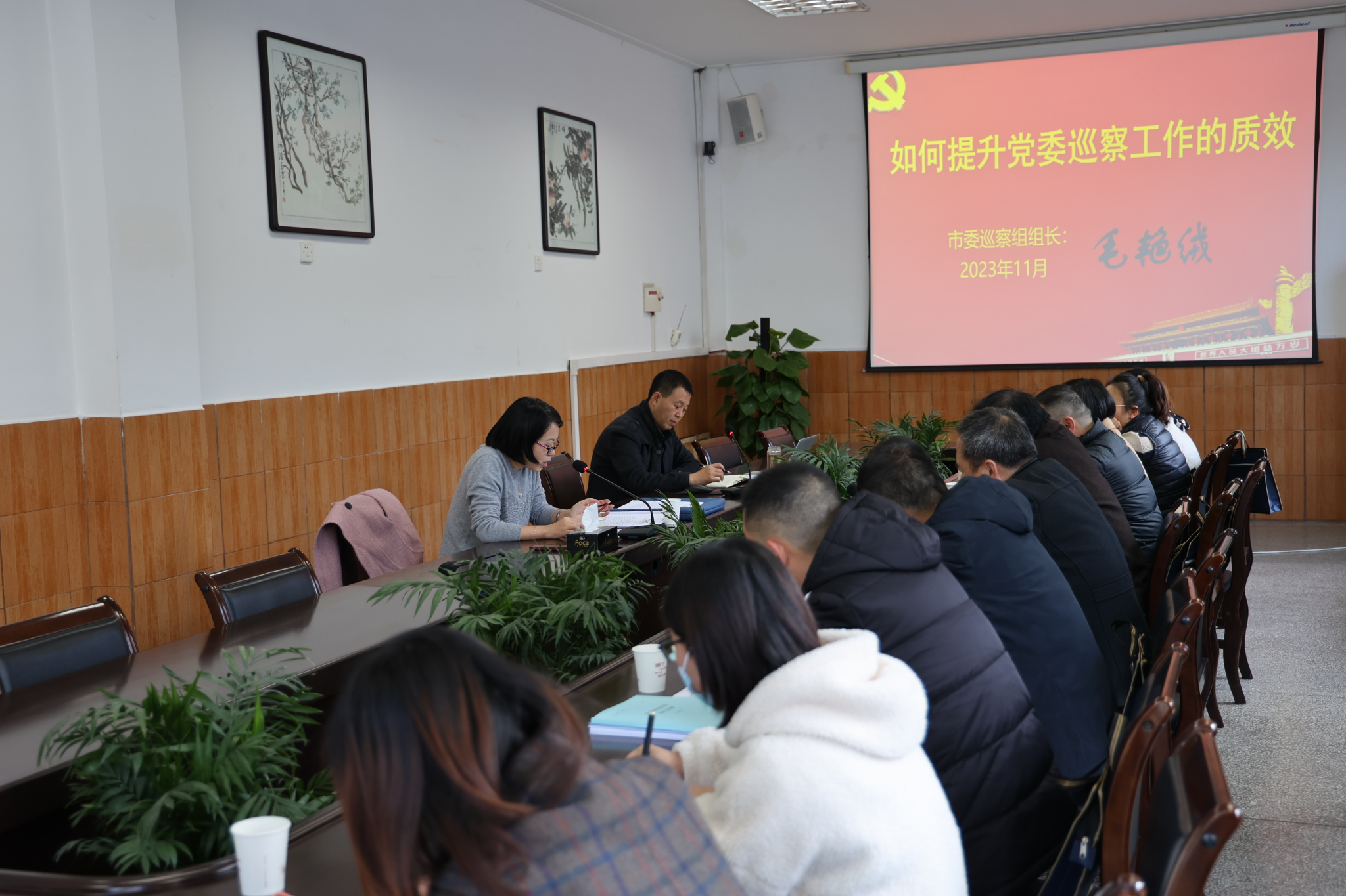 会议邀请安康市纪委委员、三级高级监察官、市委巡察组组长毛艳绒做专题辅导报告。毛艳绒以《如何提升党委巡察工作的质效》为题,结合自身多年纪检监察、巡察工作实践,按照如何认识巡察工作、如何做好巡察工作两大部分,从深刻领悟习近平总书记有关巡视巡察工作重要论述、巡视巡察制度的历史沿革、监察体制改革、政治巡察的内涵与要求、开展巡视巡察工作的法规依据、巡察工作基本流程、被巡察单位汇报稿如何审核把关、谈话发现问题的技巧方法、巡察报告撰写、巡察意见反馈等十个方面,结合事例进行了深入细致的讲解,为我校巡察组做好第二轮巡察工作提供了有效指导。