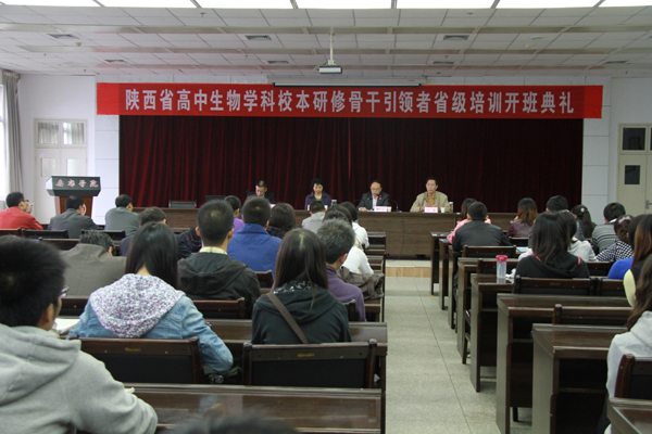 2011年9月20日上午,“陕西省普通高中生物学科校本研修骨干引领者省级培训”开班典礼在我院图书馆六楼报告厅举行。我院副院长杨行玉、陕西师范大学教师干部培训学院副院长张迎春教授、我院农学与生命科学院院长王军教授,以及来自全省十市一区和陕西石油普教中心的50名高中生物教师参加了开班仪式。 继续教育学院副院长王永东主持了开班典礼。
