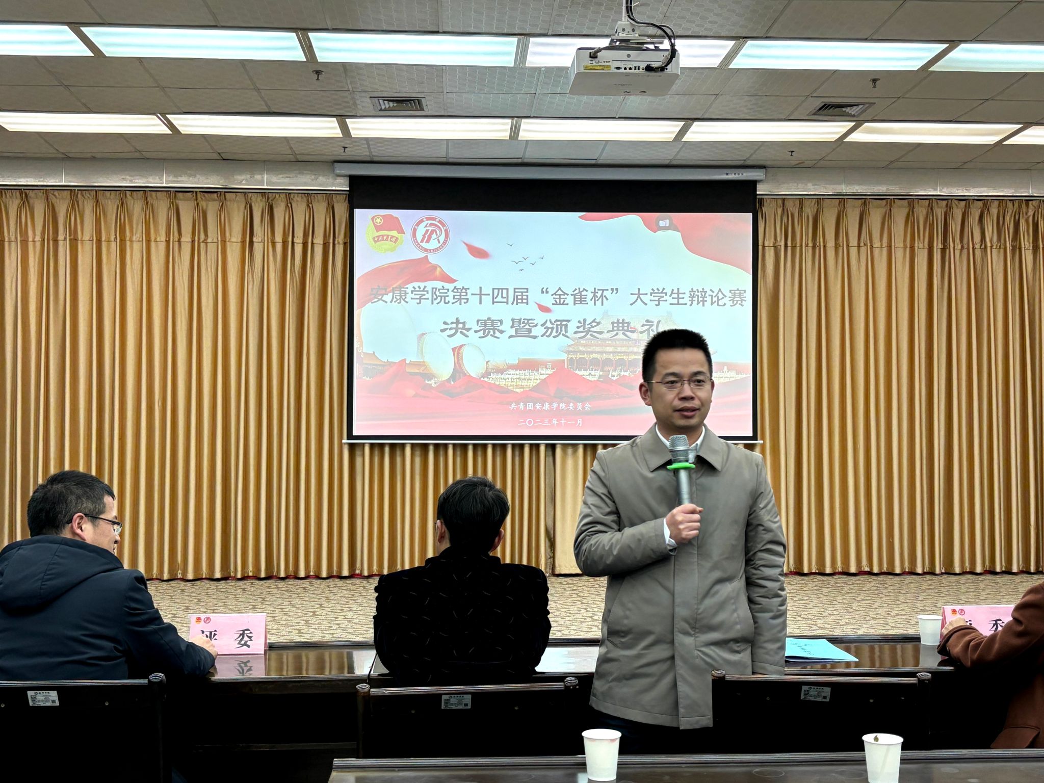 11月27日,我校第十四届“金雀杯”大学生辩论赛决赛在江南图书馆报告厅拉开帷幕。团市委组织宣传部部长周强、市文旅局文旅促进科科长徐洁、市教研室副主任吴万强、市委通讯组主任郭帮强及我校宣传部、教务处、招就处相关负责同志出席活动并担任评委。