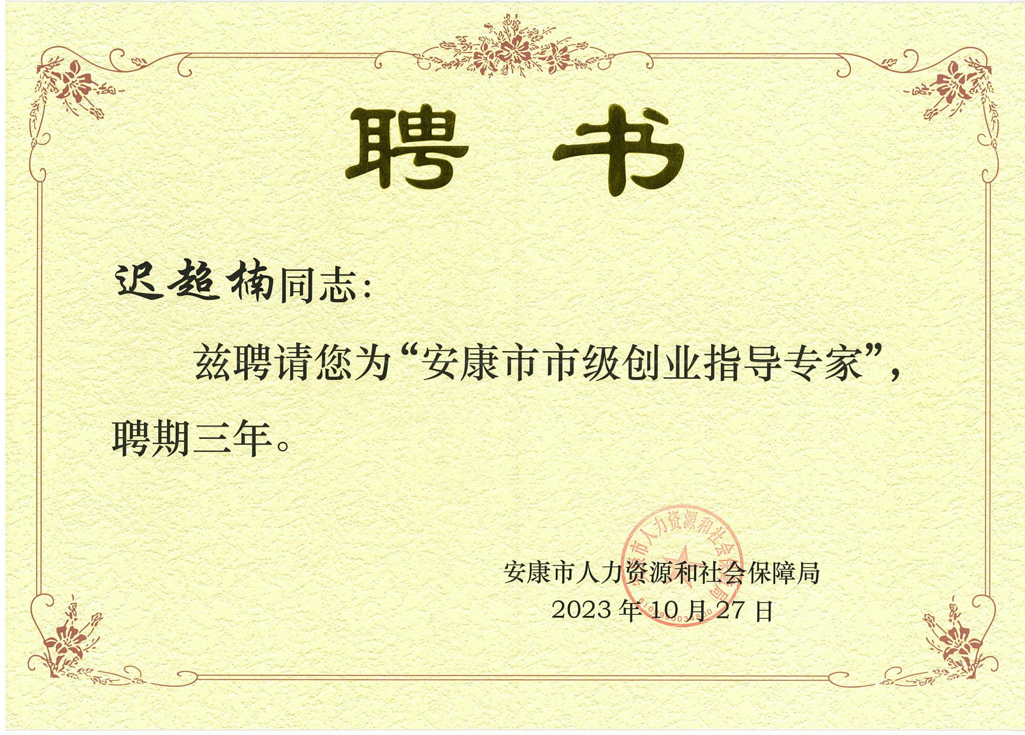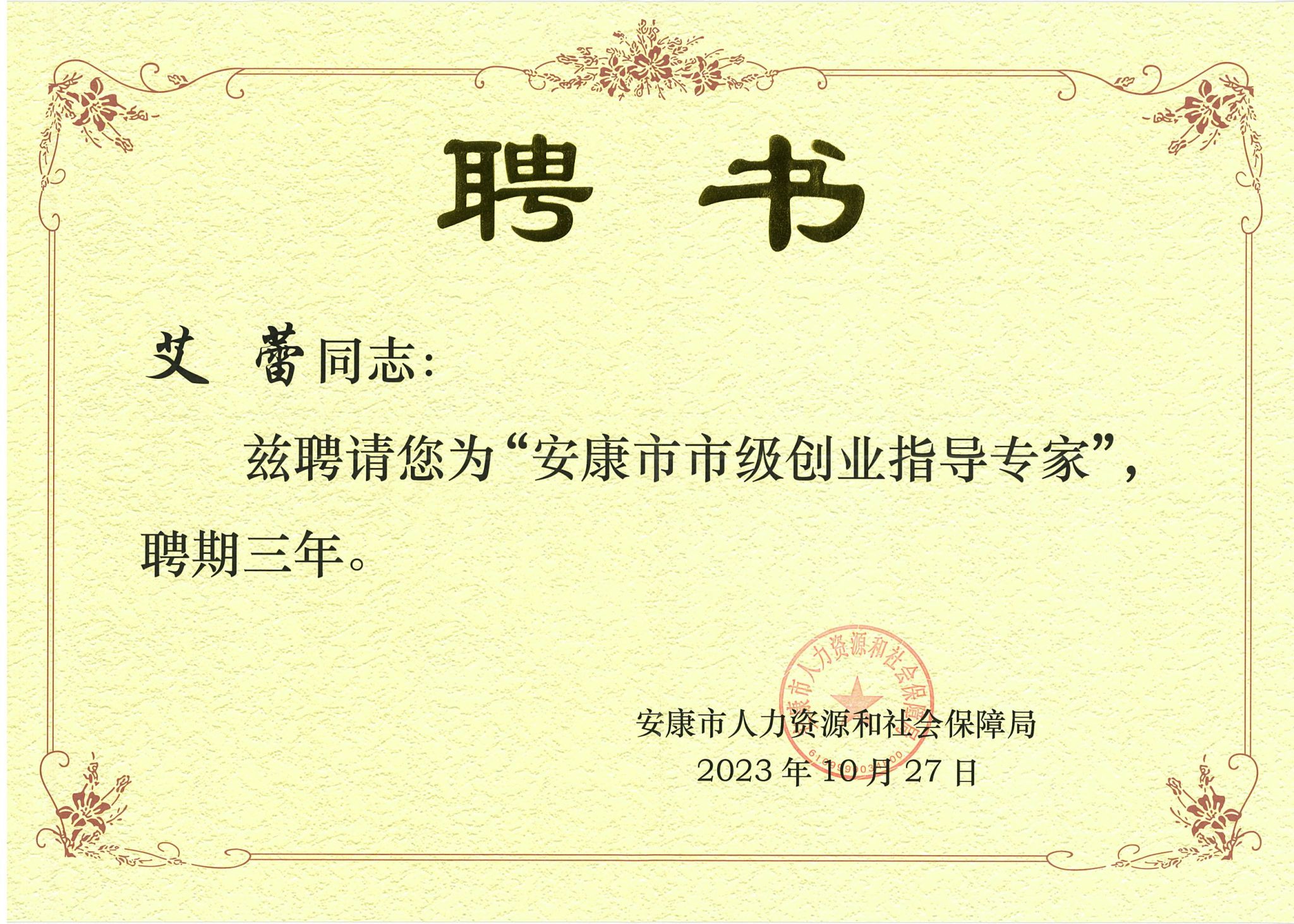 近日,安康市人力资源和社会保障局公布了2023年“安康市市级创业指导专家”选聘名单,我校田静、迟超楠、艾蕾三位教师入选。