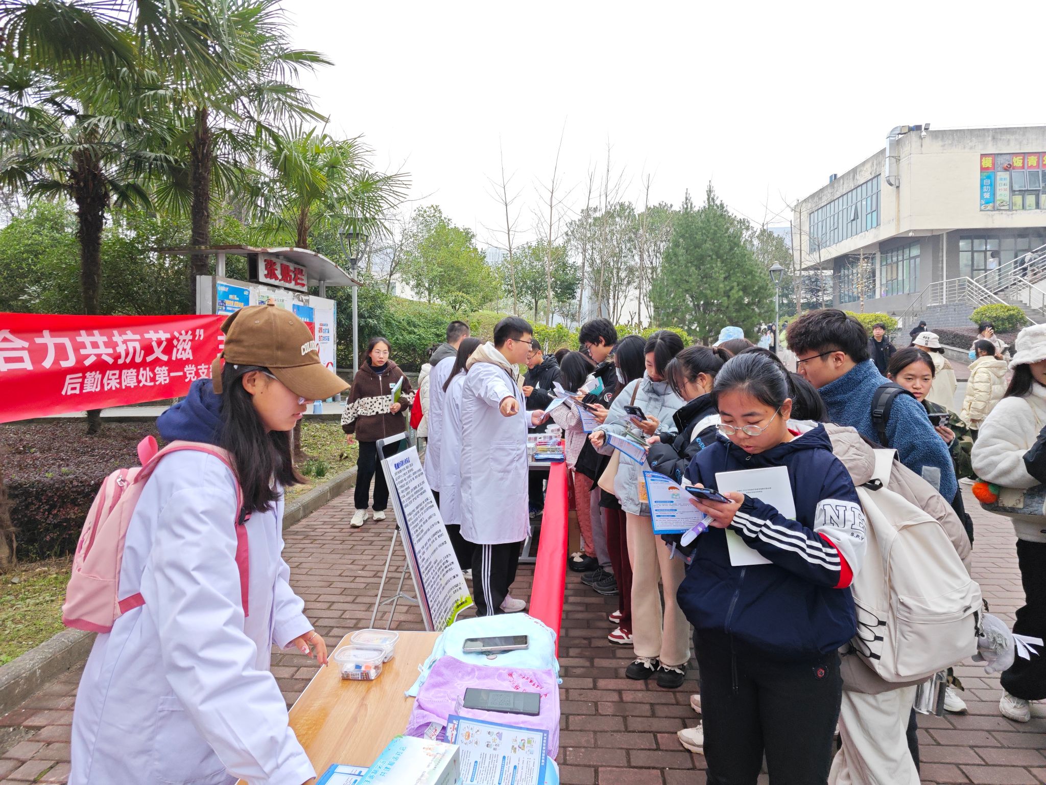 学校通过在LED屏播放宣传标语、校园摆放海报展架、发放艾滋病防治知识手册、安全套、艾滋病检测试剂盒等形式,广泛宣传相关知识。校医疗保健服务中心工作人员分别在江南校区林荫大道、江北食堂前小广场、江北学生活动中心等3处设立宣传点,现场解答师生疑问,帮助大家正确认识艾滋病的预防措施。