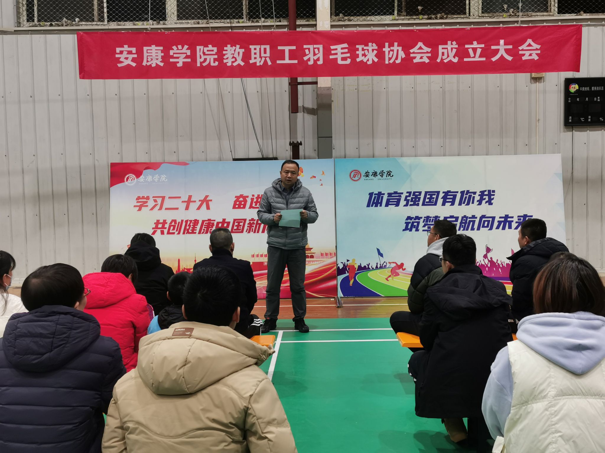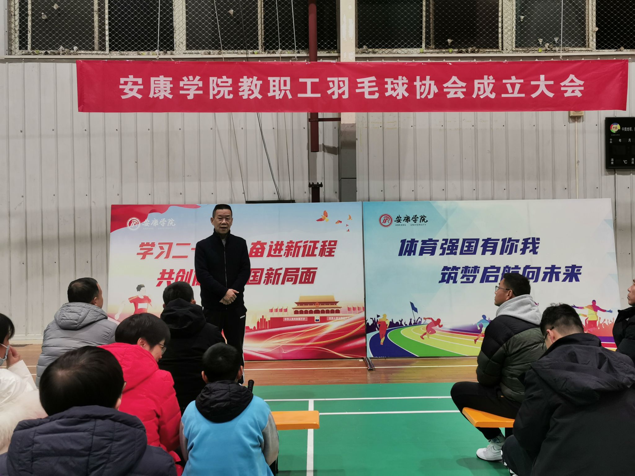 12月13日晚,我校教职工羽毛球协会在体育馆二楼举行成立大会。校工会专职副主席王永东参加了仪式。
