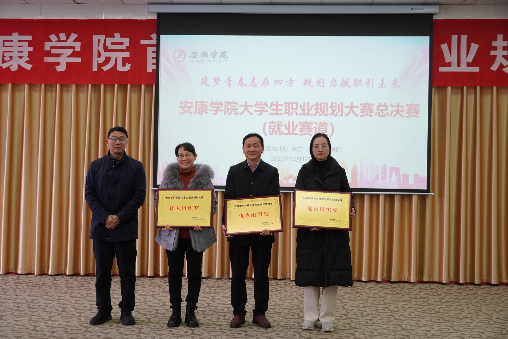 12月17日,安康学院首届大学生职业生涯规划大赛在我校江南校区图书馆六楼报告厅成功举办。学校党委副书记张东红出席活动,安康市就业创业服务中心副主任冯勋任大赛特邀嘉宾评委,学工部、马克思主义学院、招就处、就业创业教研室相关领导及教师担任大赛评委。