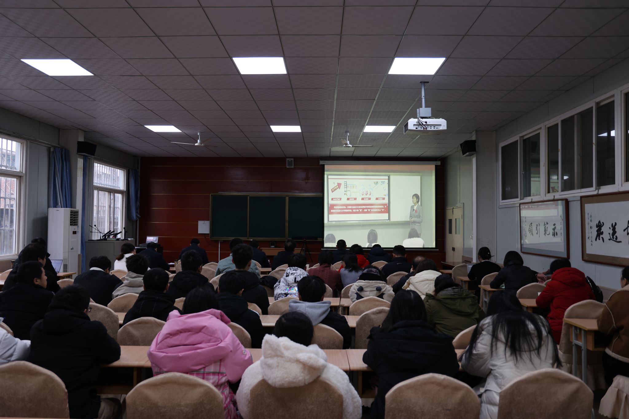学校积极组织师生通过网络观摩现场展示,党委书记丁巨涛,校长钟生海,党委副书记、纪委书记、监察专员安永强,党委副书记张东红、余谦,党委宣传部、教务处、马克思主义学院负责人,部分思政课教师、“课程思政”示范课建设项目立项团队成员及学生代表在江南校区1018多媒体教室参加观摩。