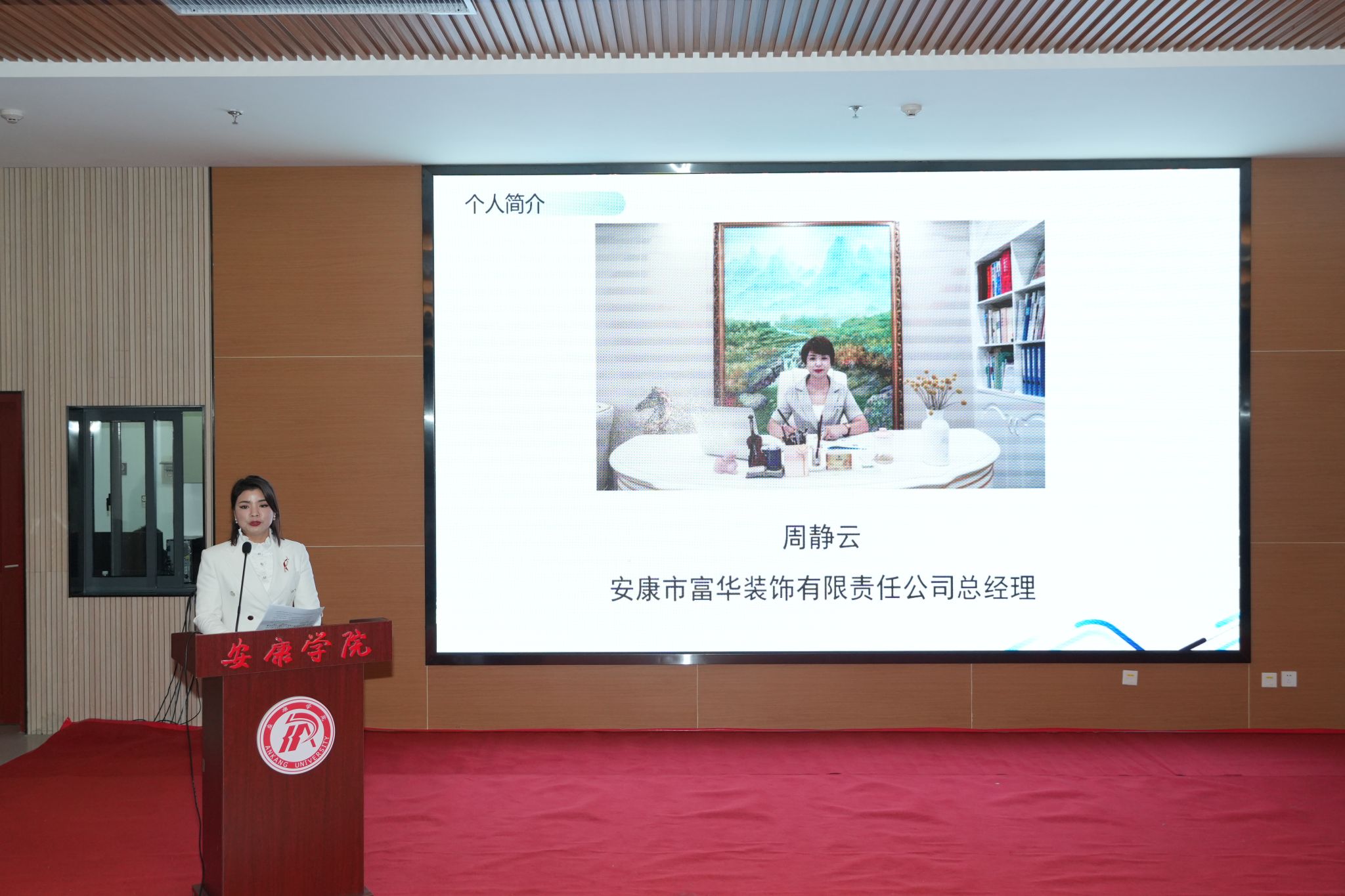 在宣讲环节,安康市鑫盛实业有限公司董事长谢贤伍、安康市富华装饰有限责任公司总经理周静云分别结合自身经历和行业领域及当下市场环境,让学生对创业有了更深入的了解。两位导师还分享了自己在创业过程中遇到的挑战、解决问题的方法和经验,给同学们上了一堂别开生面的创业指导课。