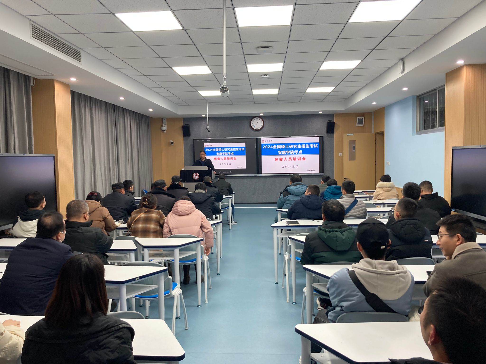 12月23日—25日,2024年全国硕士研究生招生考试举行。我校作为安康市唯一一所高校考点,共设置标准化考场68个、备用考场8个,考生人数2023人,参加监考、考务、巡考、后勤保障、学生志愿者等工作人员400余人。