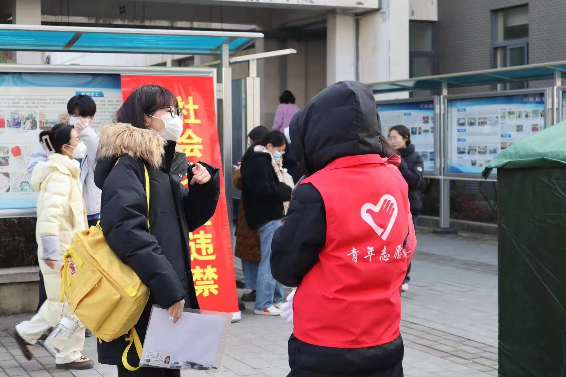 学校专门配备志愿者为考生提供专门的存包、校内指引、残障帮扶等服务;设置休息区域并配备饮水机和纸杯,解决考生实际需求,实施错峰就餐,解决校内学生和考生用餐拥堵问题;对特殊类考生安排人工安检,为考生提供暖心服务。