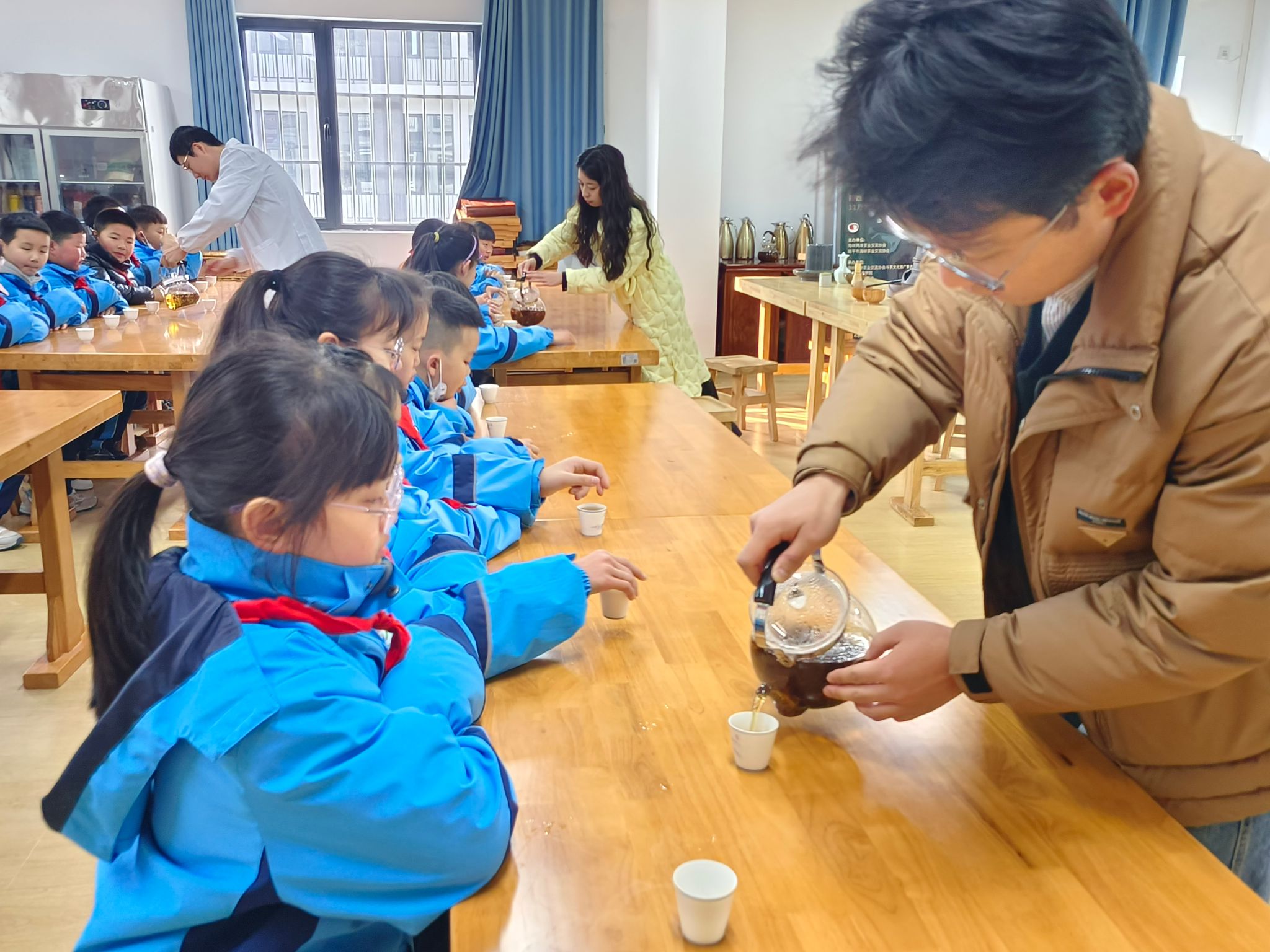 在茶学实验实训室,我校茶学专业教师吴冲博士为孩子们讲解和演示了茶叶的制作工艺和流程,带领孩子们探索了茶叶的无土选育。在茶艺演示室,程晓梅、袁月两位老师为孩子们带来了探秘茶叶的科普讲座并准备了由茶学专业老师选育并制作的红茶,在品茗和热烈的互动问答中,激发了孩子们对中国茶文化浓厚的兴趣,更加坚定了对中国优秀传统文化的自信。