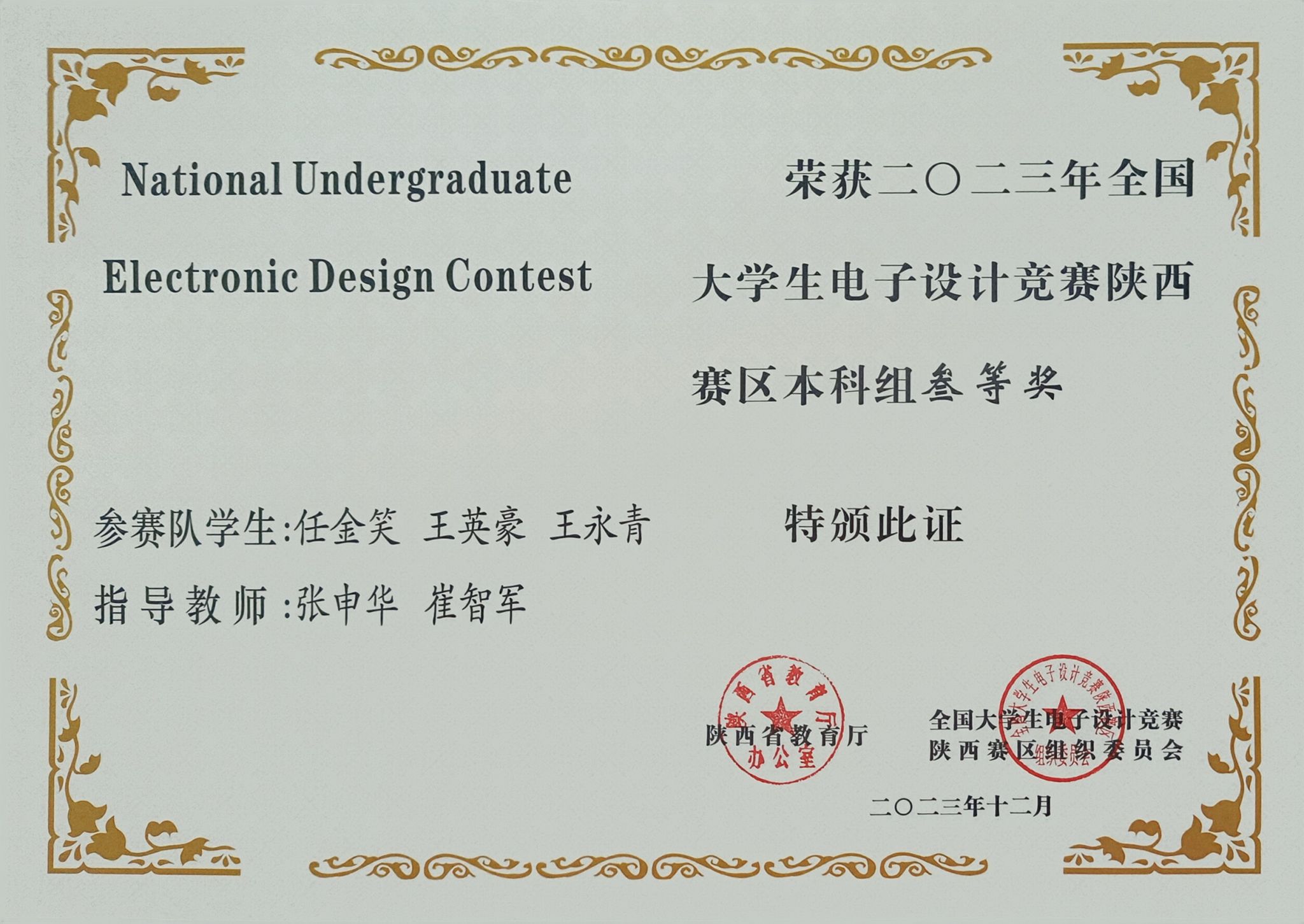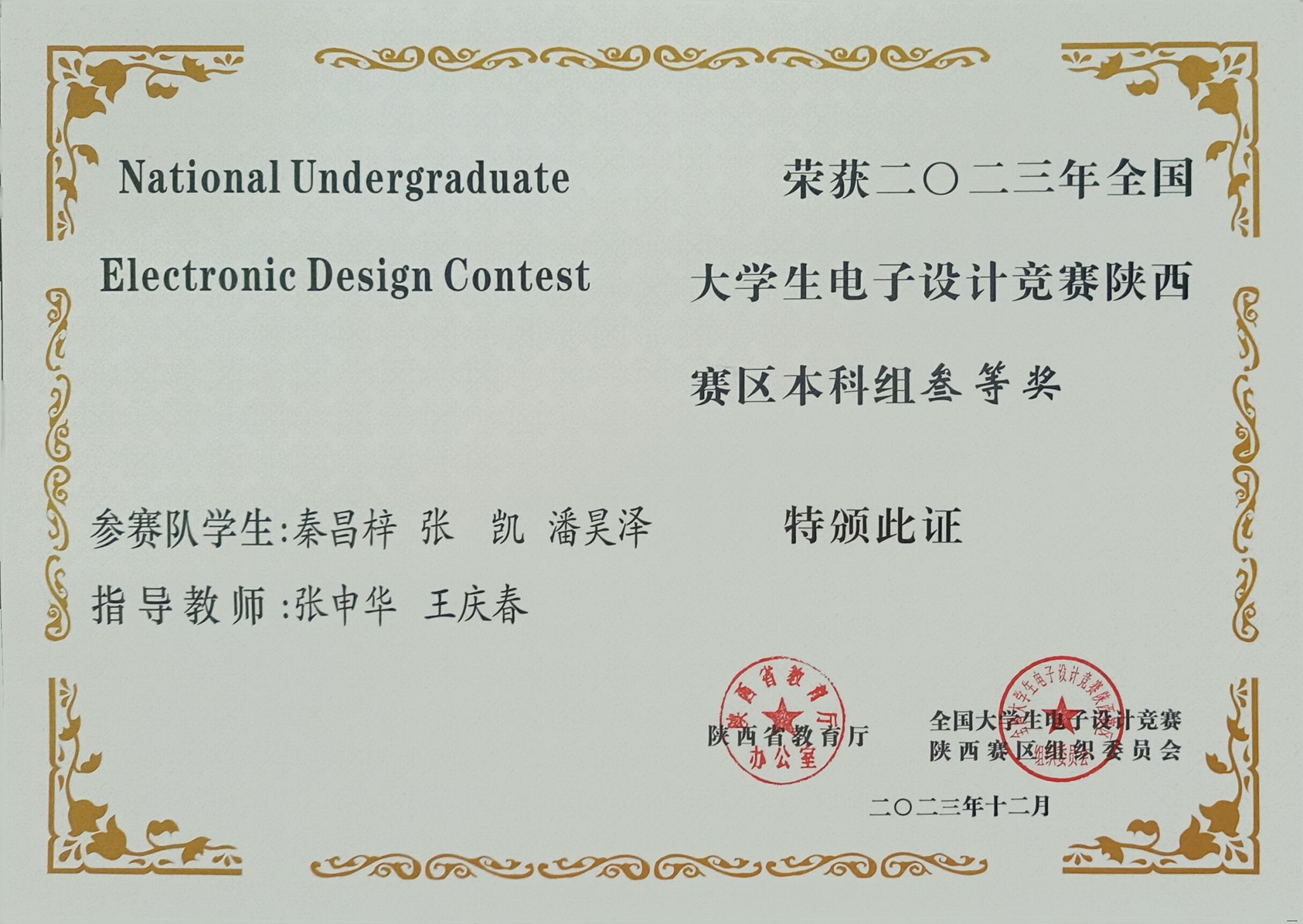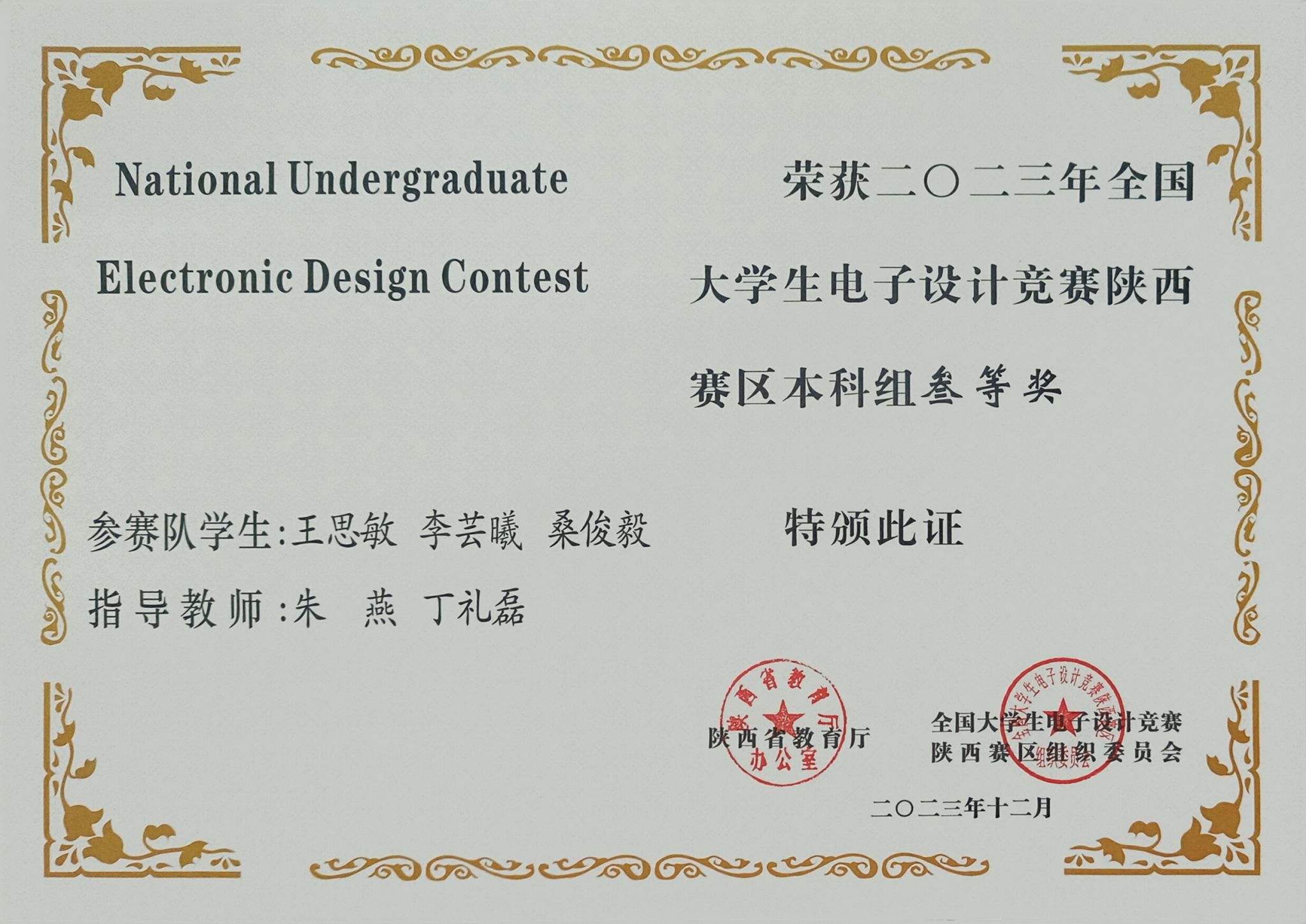 日前,陕西省教育厅办公室发布了《关于公布2023年全国大学生电子设计竞赛陕西赛区获奖名单的通知》,我校学子获得了陕西赛区本科组一等奖1项、二等奖2项、三等奖6项,电信学院教师丁礼磊获优秀组织个人奖,安康学院由于竞赛组织保障工作有力获得了表扬。