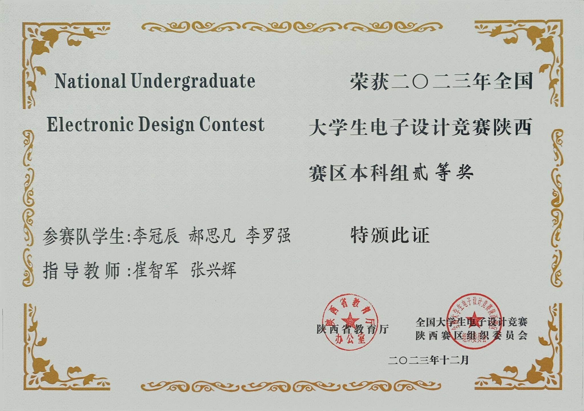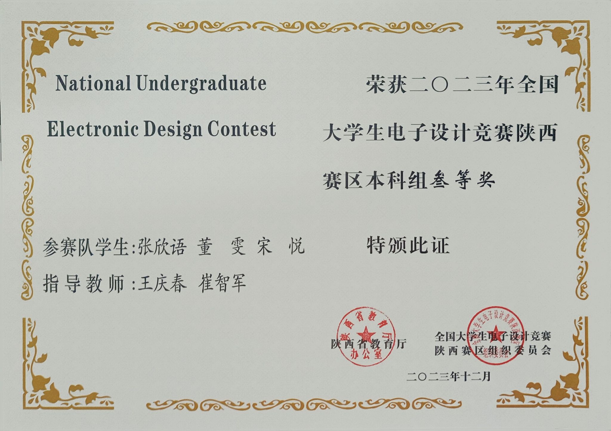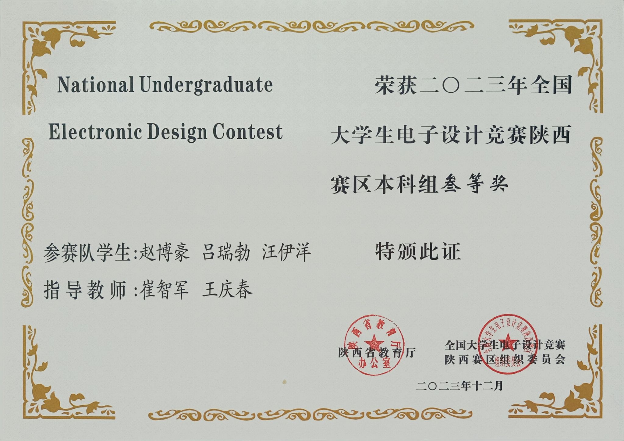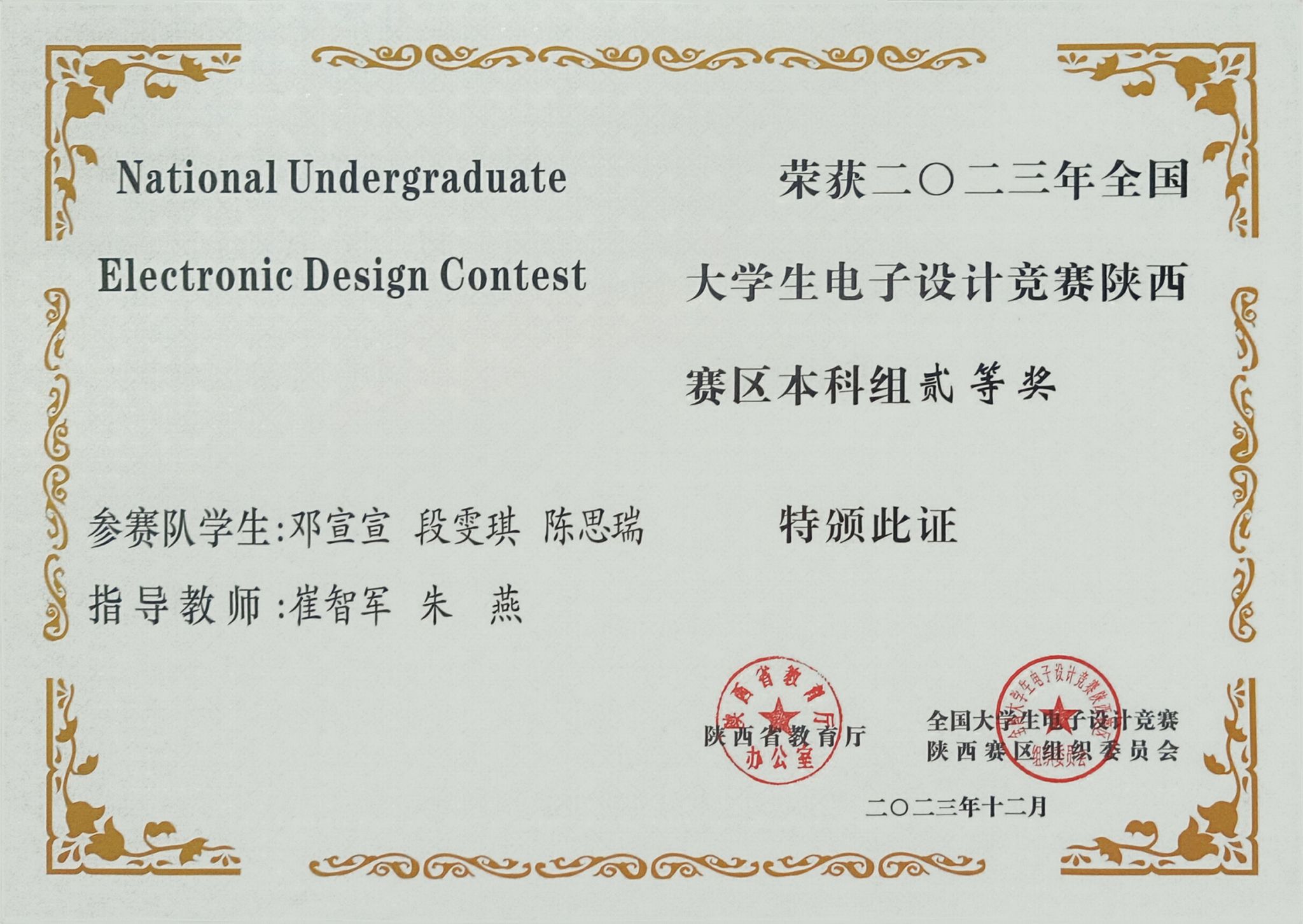 日前,陕西省教育厅办公室发布了《关于公布2023年全国大学生电子设计竞赛陕西赛区获奖名单的通知》,我校学子获得了陕西赛区本科组一等奖1项、二等奖2项、三等奖6项,电信学院教师丁礼磊获优秀组织个人奖,安康学院由于竞赛组织保障工作有力获得了表扬。