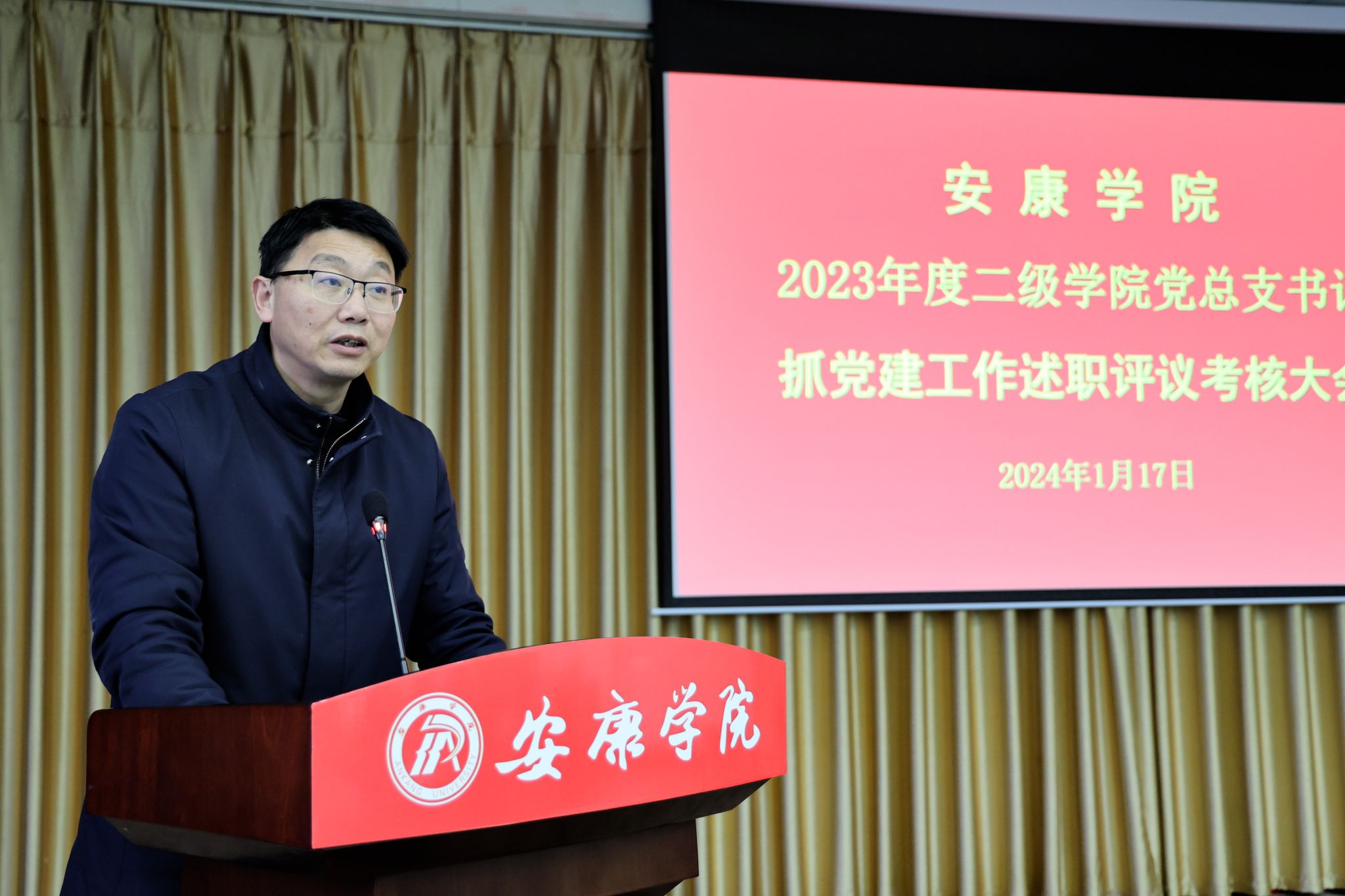 党委书记丁巨涛点评。他充分肯定了各二级学院党总支在2023年度基层党建工作中取得的成绩,逐一点评党建工作中呈现的特色亮点,指出了存在的问题,并提出工作要求:一是强化学习,不断增强抓好党建工作的自觉性和责任感。充分认识抓好基层党建是必须履行的政治责任,牢固树立“第一责任人”的主责意识,坚持以习近平新时代中国特色社会主义思想武装头脑、指导实践、推动工作;二是聚焦重点,充分发挥党组织政治功能和组织功能。持续深入落实《中共安康学院委员会关于高质量发展实施意见》,以党建“双创”为抓手,聚焦“五大行动”“五促融合”,结合实际,创新工作,充分发挥党组织的战斗堡垒作用和共产党员的先锋模范作用;三是落实责任,持续推进全面从严治党向纵深发展。压紧压实全面从严治党主体责任、监督责任、第一责任和“一岗双责”,抓牢抓实作风建设,把学校作风建设十项规定不折不扣落实到工作中、体现到行动上;四是提高站位,筑牢安全稳定工作底线。要以“时时放心不下”的责任感,全力推进安全稳定各项工作任务落到实处,建设平安和谐校园。