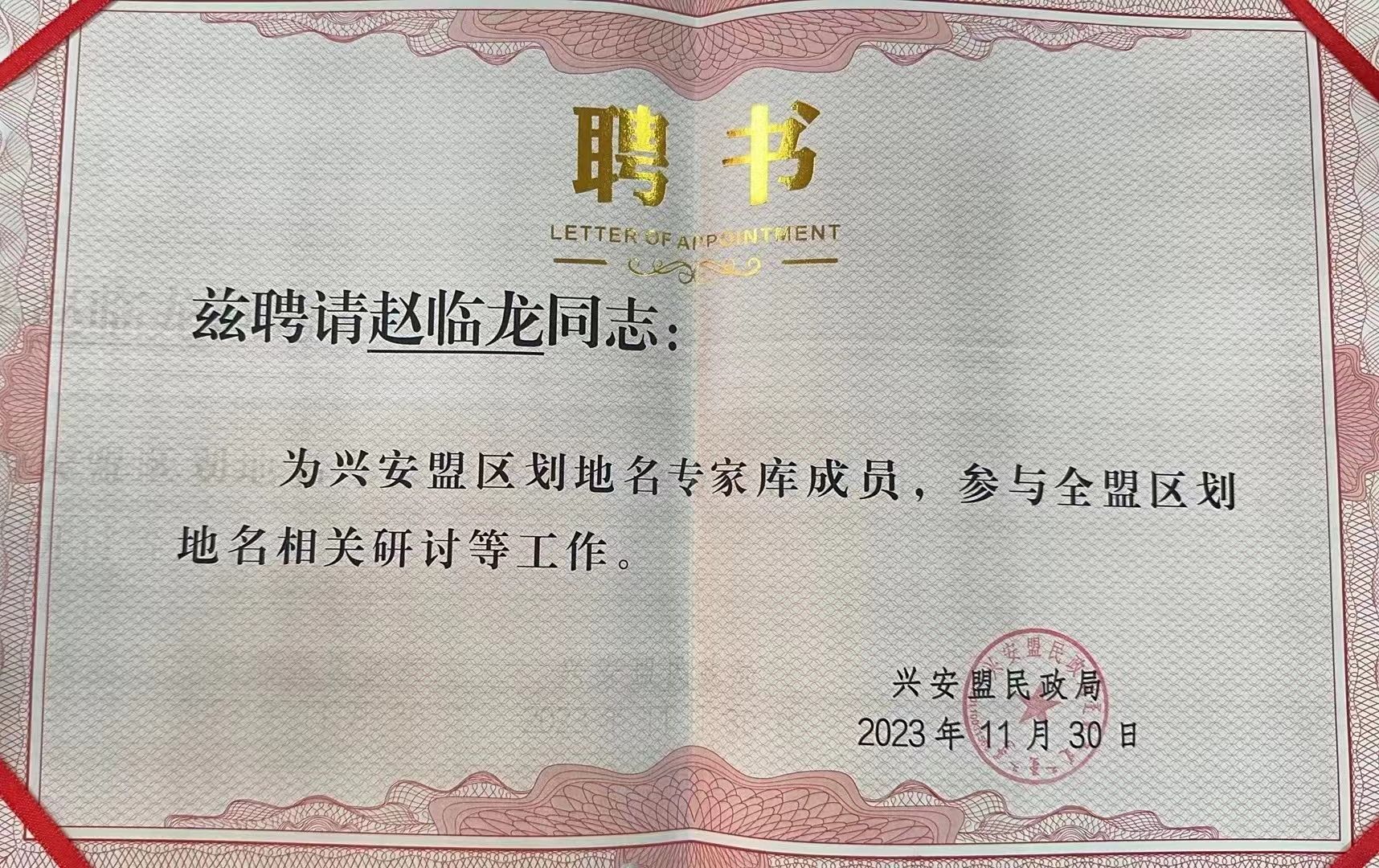 为进一步提升兴安盟区划地名工作法治化、科学化、规范化水平,充分发挥专家学者在行政区划地名领域研究管理等方面的重要“智库”作用,兴安盟聘请全国区划地名专家23名,为推动兴安盟行政区划工作规范化提供指导意见,以在弘扬和传承兴安盟优秀特色地名文化起到重要作用。