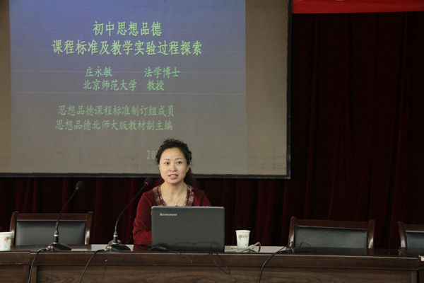 10月14日,北京师范大学硕士生导师庄永敏教授应邀为我校政史系师生、全体辅导员及我院2011年“国培计划”---初中思品培训班学员作了题为“思品教材的编写理念与教学对策”的学术报告。