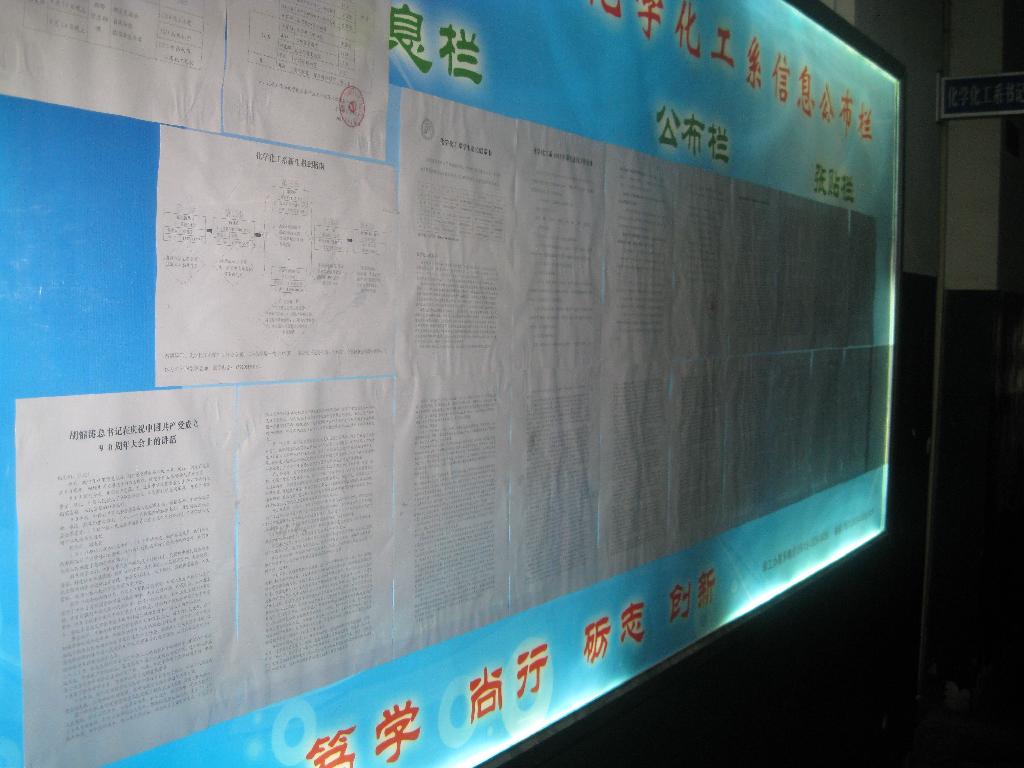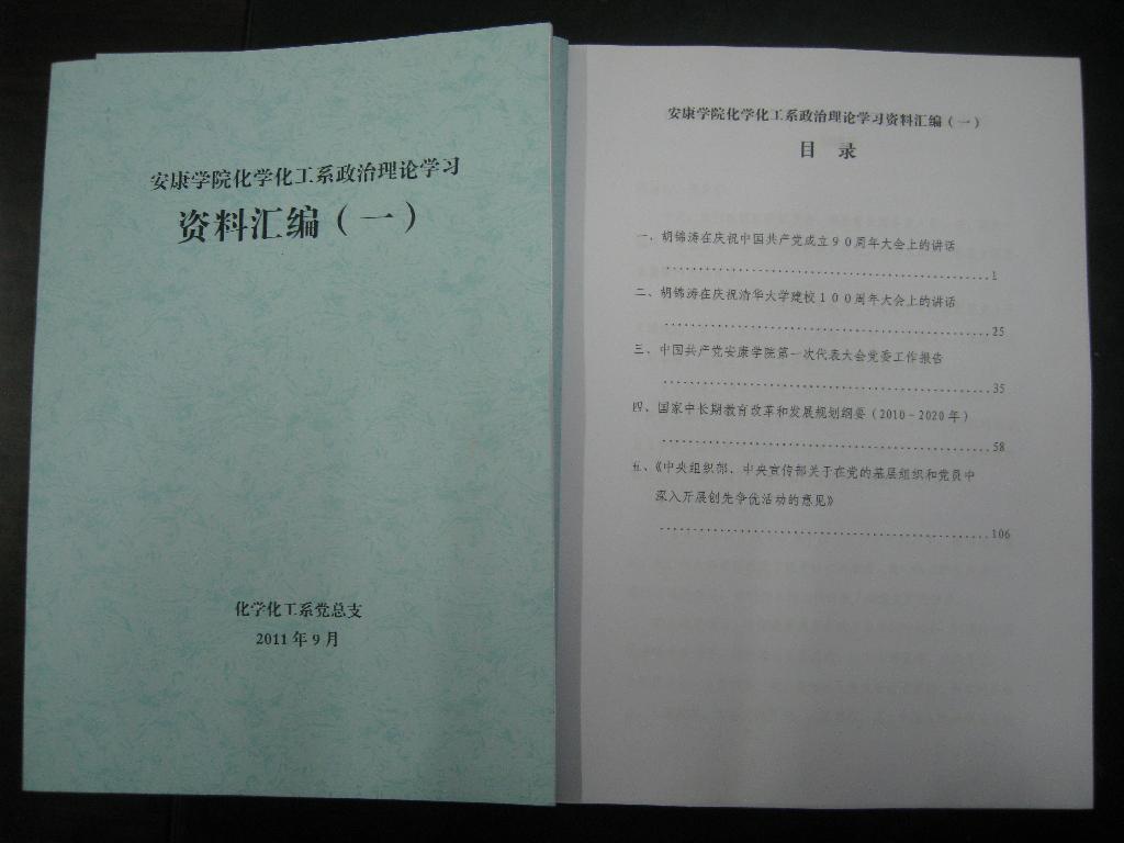 据悉,我院第一次党代会召开后,化学化工系党总支将胡锦涛总书记在庆祝建党90周年大会上讲话、胡锦涛总书记在庆祝清华大学建校100周年大会上的讲话、安康学院第一届党代会党委工作报告、《国家中长期教育改革和发展规划纲要(2010-2020年)》、《中央组织部、中央宣传部关于在党的基层组织和党员中深入开展创先争优活动的意见》等五个文件作为当前理论学习的重点,对了师生理论学习做了详细布置。化学化工系党总支还编印了《安康学院化学化工系政治理论学习资料汇编》,制作了理论学习宣传展板,并将学习资料上传系党建栏目网页上,供师生自学使用。