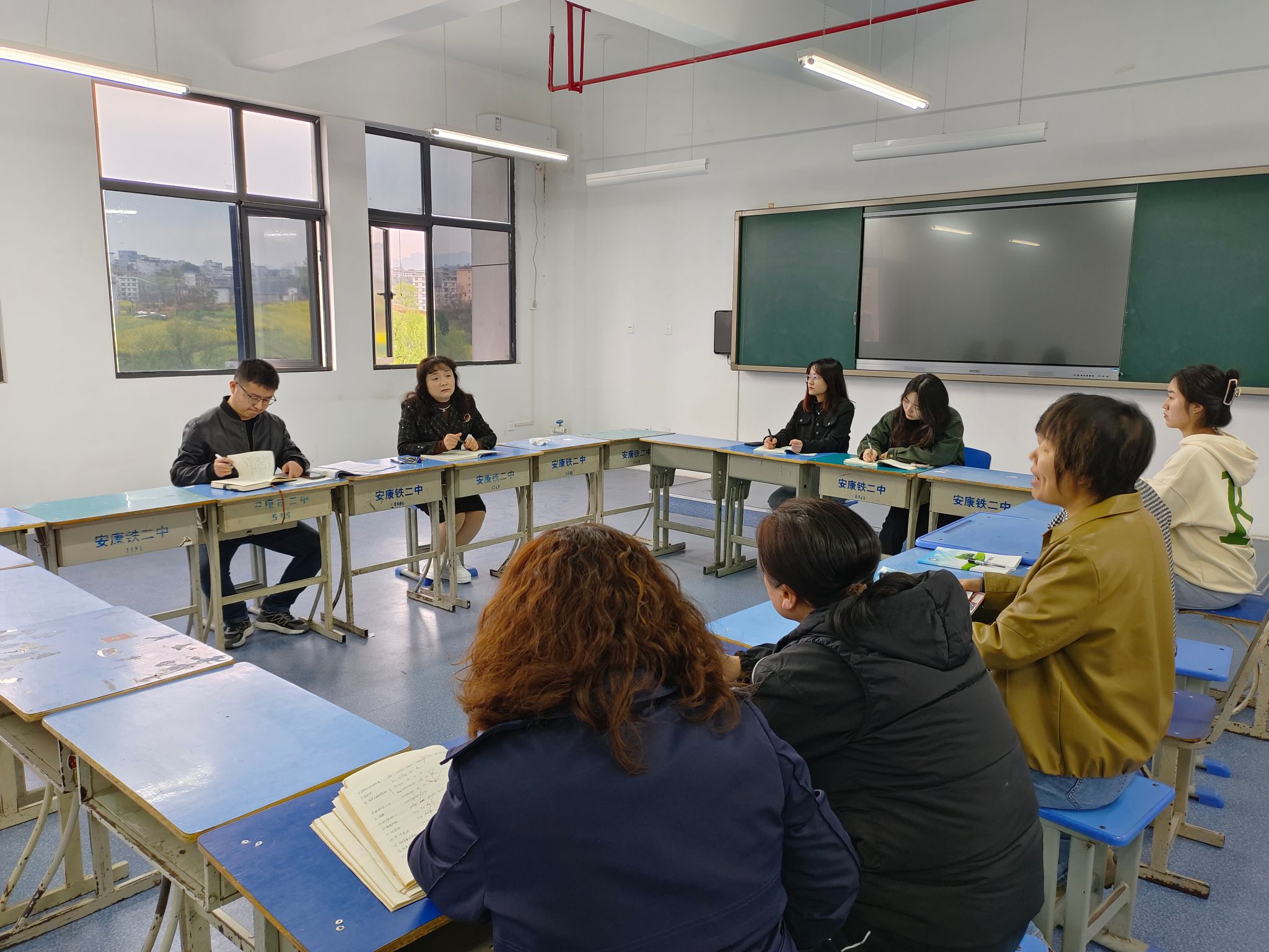 2024年春季开学,安康市第二中学因高中英语教师不足向我校外语学院提出请求,希望能够选派几名英语专业毕业生顶岗支教。外语学院班子高度重视,认真遴选了四名品学兼优的英语专业大四学生。2月29日,在外语学院院长张哲华及学工办主任梁博文的带领下,四名学生赴安康市第二中学开展为期一学期的高中英语教学工作。在见面会上,安康市第二中学副校长程光正等校领导向我校表达了诚挚谢意,同时为四位“准教师”配备了教学经验丰富的指导教师。