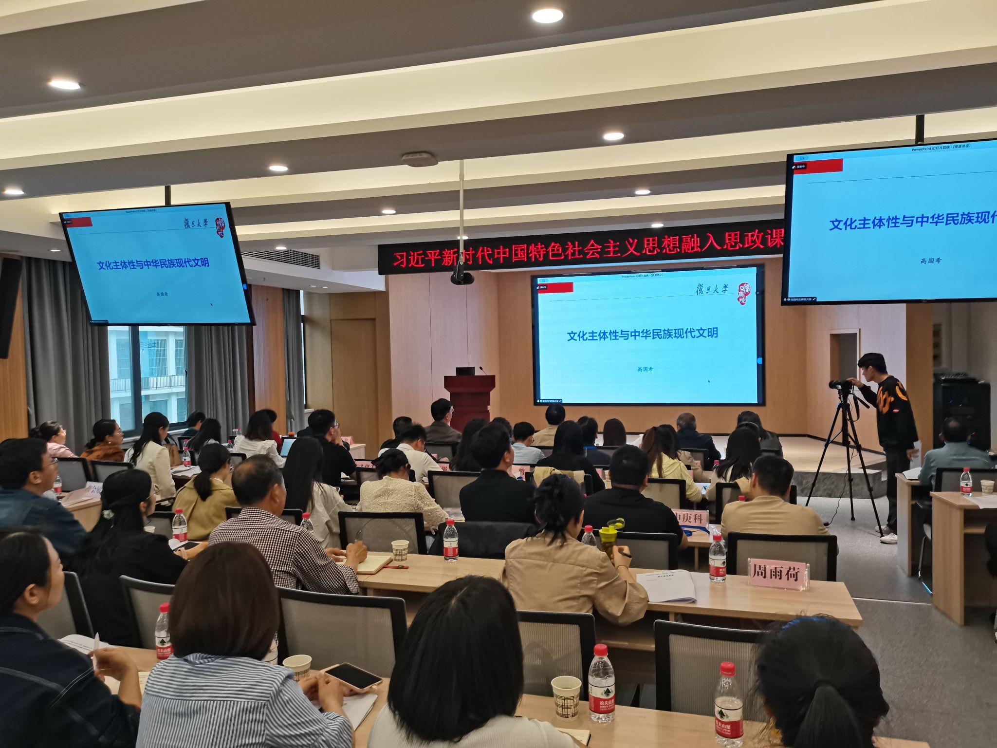 在学术交流环节,复旦大学马克思主义学院高国希教授作了题为《文化主体性与中华民族现代文明》的主题报告;武汉大学马克思主义学院佘双好教授作了《“讲话”五年来高校思政课深刻变化和发展趋势》的主题报告。两位教授的精彩发言引发了与会者的广泛关注和热烈讨论。