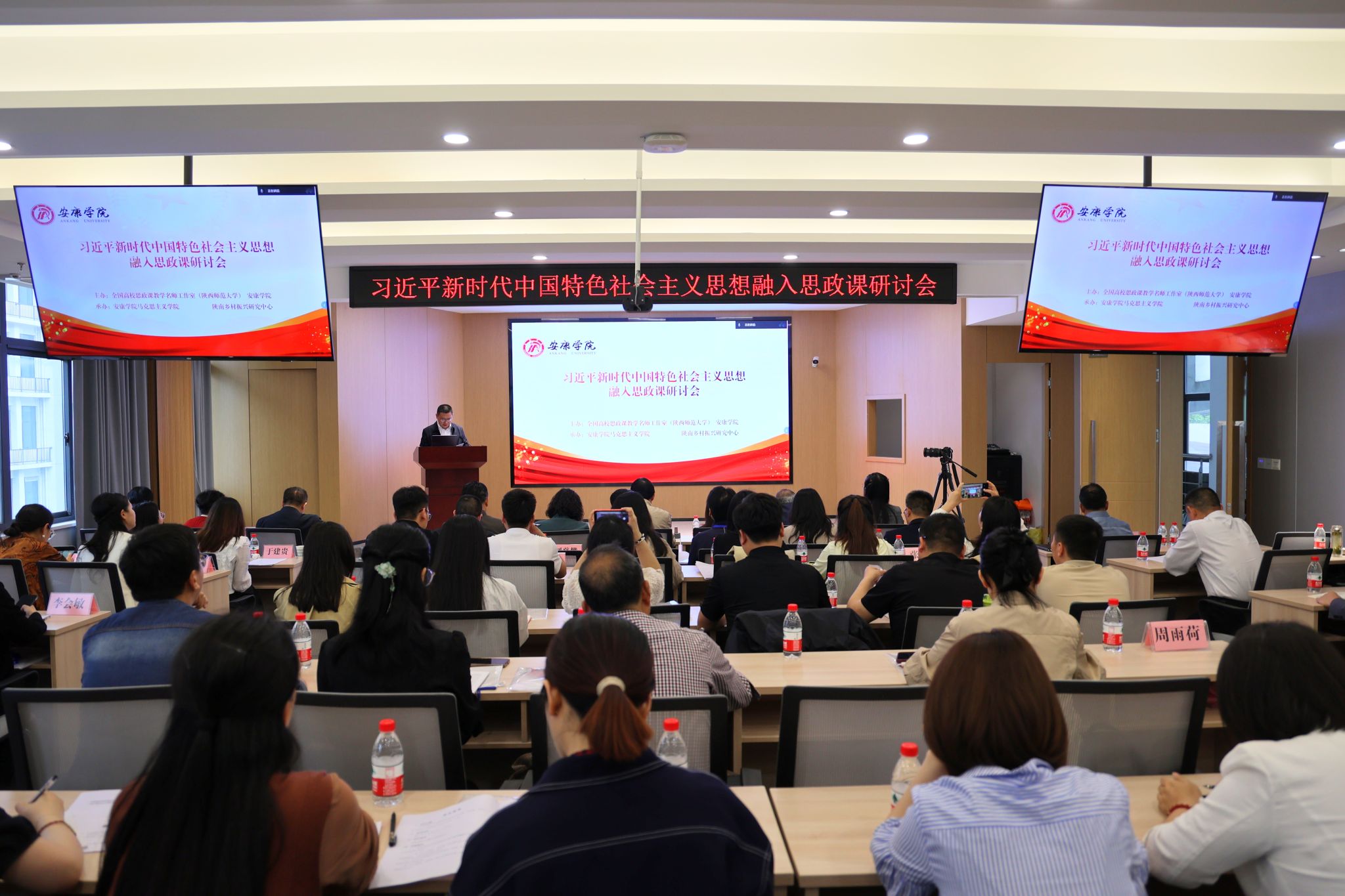 4月29日至30日,由全国高校思政课教学名师工作室(陕西师范大学)、安康学院共同主办,我校马克思主义学院、陕南乡村振兴研究中心承办的“习近平新时代中国特色社会主义思想融入思政课”研讨会在我校举行。来自武汉大学、西安交通大学、中央民族大学、陕西师范大学等20余所高校和《陕西师范大学学报》《贵州民族研究》编辑部等60余名专家学者及我校80余名师生参加了此次研讨会。学校党委理论学习中心组参加了开幕式及主旨报告环节,党委副书记余谦主持开幕式及主旨报告。