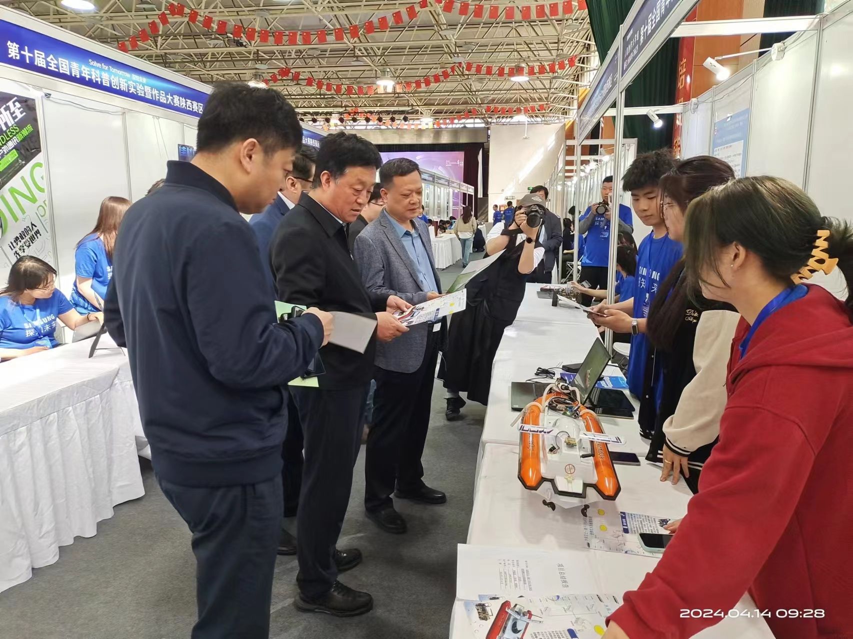 本次大赛重点围绕“智慧·安全·环保”三大主题,包含“创意作品”和“科普实验”两类项目。在作品展示环节,《水保卫士——基于FPGA与STM32的便携式水质检测系统》项目得到了省科协领导的关注和认可,西安广播电视台还对《智拣械手——基于嵌入式的智能分拣体感交互机械臂》项目进行了现场采访和新闻报道。