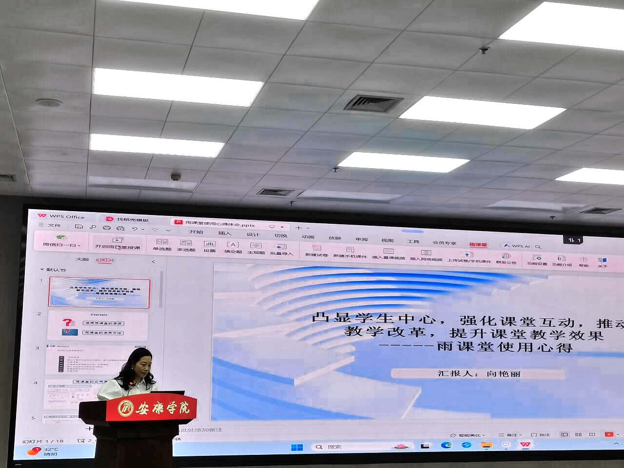 外语学院教师向艳丽以《凸显学生中心,强化课堂互动,推动教学改革,提升课堂教学效果》为题分享了雨课堂使用心得。