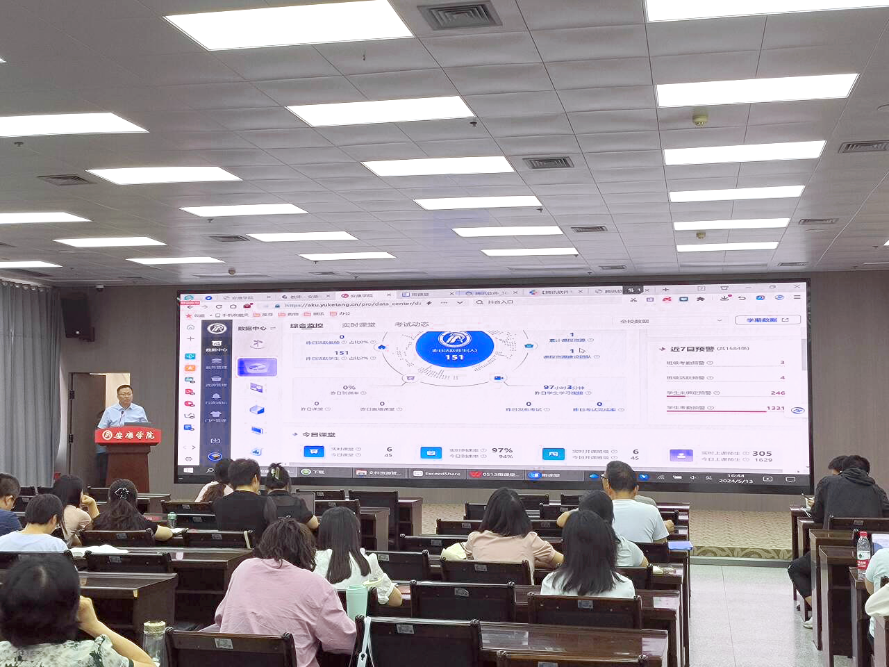 最后,信息化建设与教学中心副主任崔炜荣从雨课堂绑定率、教学活动活跃度等方面对全校雨课堂使用情况作以通报,并结合教育数字化的要求和学校信息化教学的现状号召教师提升教育数字化素养,用好信息技术平台,让信息技术充分赋能教学质量提升。