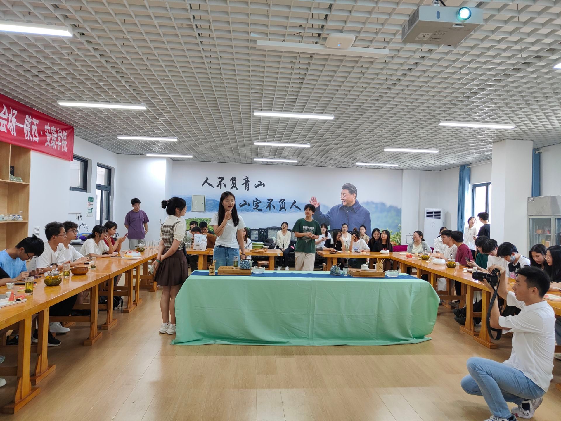 在茶字飞花令环节,同学们积极踊跃参与茶诗、茶词接龙,结合茶叶知识的互动,使大家真正感受到品饮茶的乐趣以及茶文化的丰厚底蕴,增强了对传统文化的认同感和自豪感。