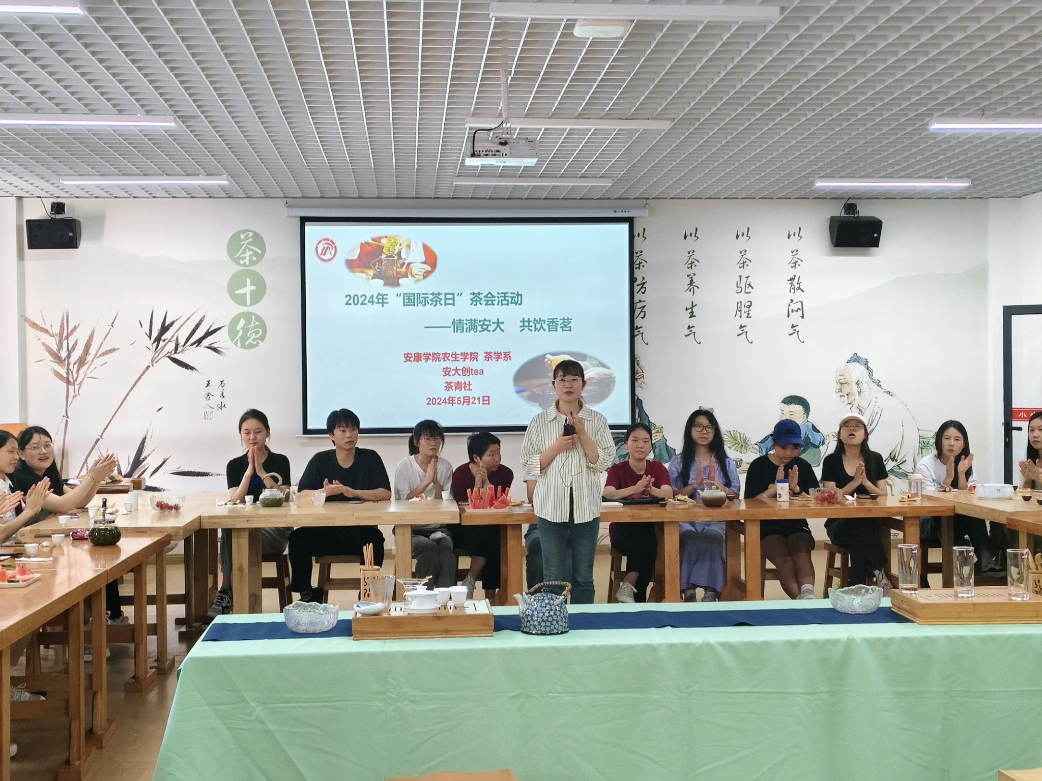 2024年5月21日是第五个“国际茶日”,为弘扬茶文化,引导大学生继承和发扬优秀文化传统,丰富第二课堂,我校农生学院茶学系、安大创tea、茶青社联合举办“情满校园 共饮香茗”茶会活动。茶学专业部分师生和其他二级学院茶文化爱好者参加了活动。