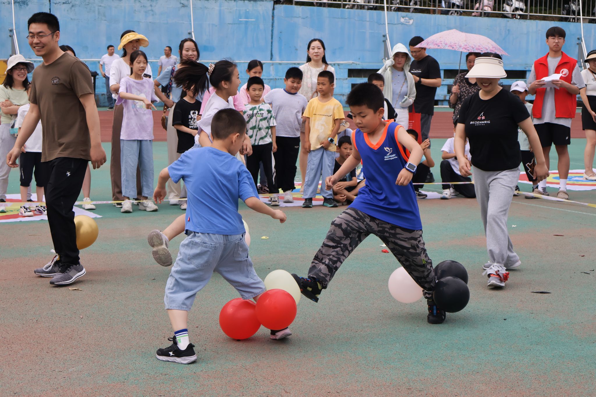 活动现场人声鼎沸,150多个家庭、300余名儿童和家长瞬间将操场演绎成一片欢乐的海洋。活动中,或亲子共同参与,或孩子们独自上场,体验获胜的快乐、交往的乐趣。一系列丰富多彩的互动游戏,为孩子们描绘了一幅五彩斑斓的童梦画卷,让他们度过了一个幸福难忘的儿童节。