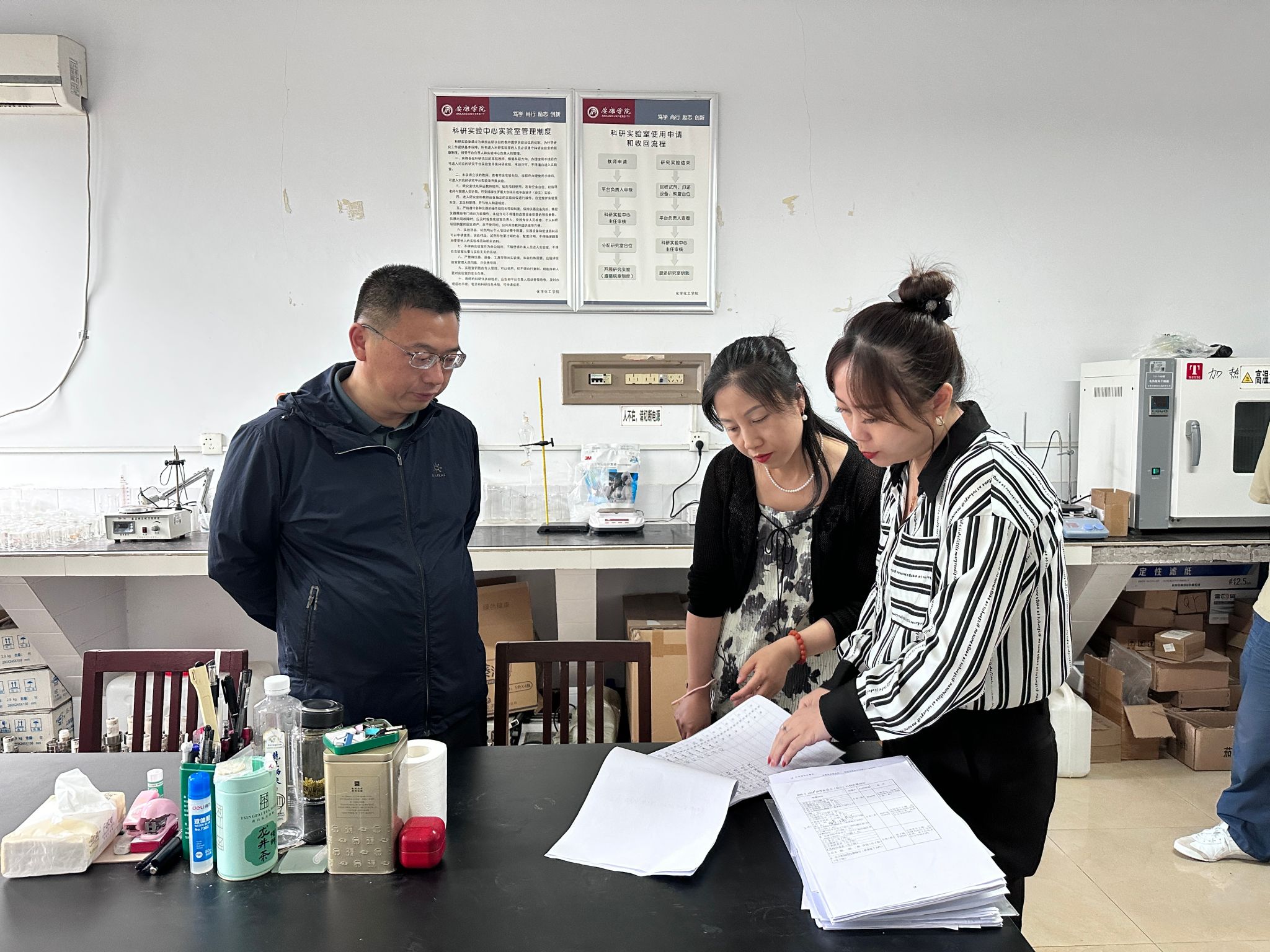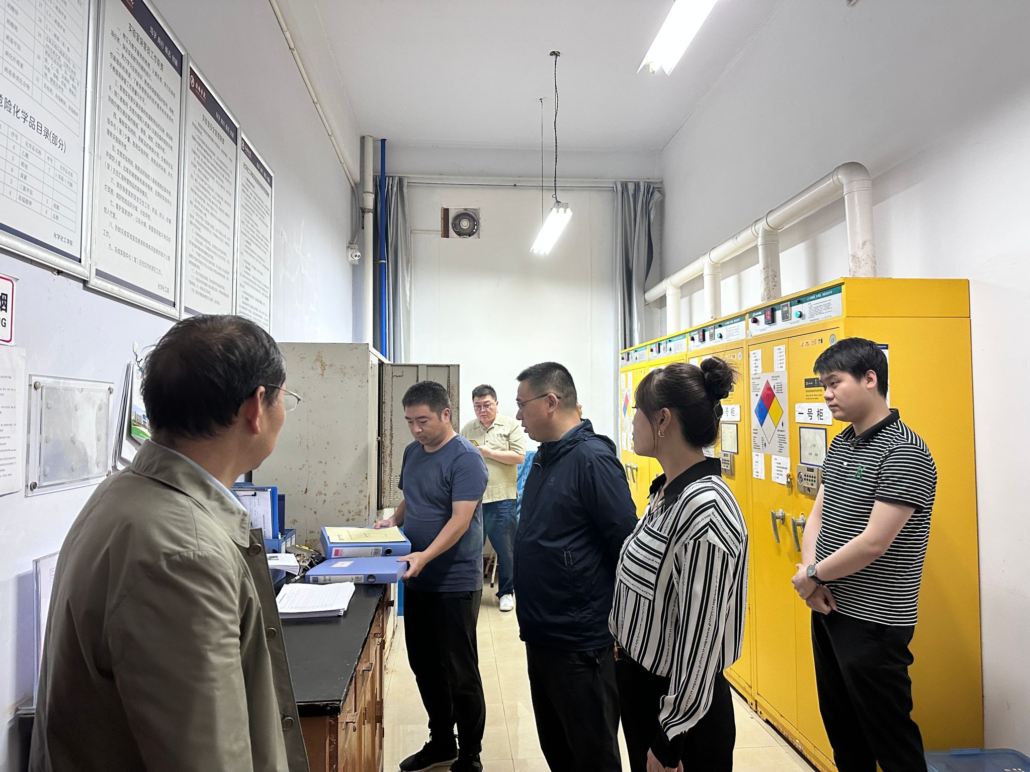 检查组严格参照《高等学校实验室安全检查项目表》(2024年),对实验室危险化学品安全、气体安全、高风险设备使用安全等进行了重点检查。检查组在检查中发现,学校大部分实验室安全管理制度健全、管理措施规范,实验室安全状况良好、实验场所环境干净整洁,但个别实验室仍存在安全信息牌更新不及时、墙面渗水等问题。检查组现场对检查中发现的问题和隐患提出了整改要求和指导意见。