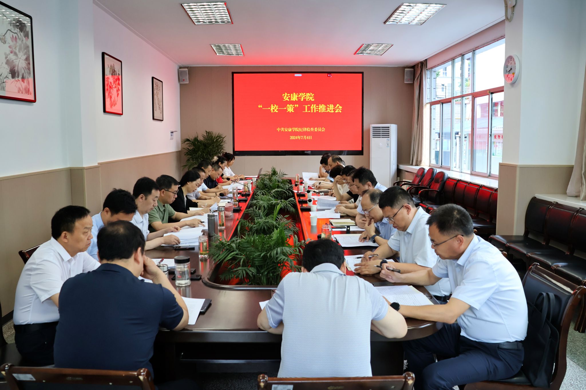 安永强就推进落实“一校一策”工作提工作要求。一要提高政治站位,坚决扛牢政治责任。以习近平新时代中国特色社会主义思想为指导,深入学习贯彻习近平总书记关于教育的重要论述和历次来陕考察重要讲话重要指示精神,全面贯彻落实党的二十大关于教育强国、科技强国、人才强国的重大决策部署,准确把握“一校一策”工作的核心内涵,以高度的政治责任感推进2024年度“一校一策”重点任务落地落实。二要切实细化举措,加强系统谋划推进。坚持问题导向、目标导向,深入查找问题根源,认真听取教职工的意见建议,“把准脉”“诊对症”“开对方”,研究推进解决问题的针对性措施,创新方式方法、优化工作流程,推动形成更多制度性、机制性成果;加强工作统筹协调,注重融合结合,确保“一校一策”工作取得实效。三要紧盯任务推进,持续加强监督检查。学校纪委认真落实监督责任,坚持把落实省纪委监委推进“一校一策”要求与日常监督、信访举报、执纪问责结合起来,对监督检查中发现的问题及时反馈、限期整改;对敷衍塞责、消极应付、搞形式主义的运用监督执纪“四种形态”严肃追责问责,坚持以强有力监督持续推动深化科研评价改革取得实效。四是认真调研,精心谋划明年工作。各有关部门要在全力推动今年工作的同时,认真开展调查研究,积极谋划明年的“一校一策”工作,关注影响我校高质量发展的突出问题、瓶颈问题、短板问题,精准选题,细化举措,全面推动我校各项工作不断发展。
