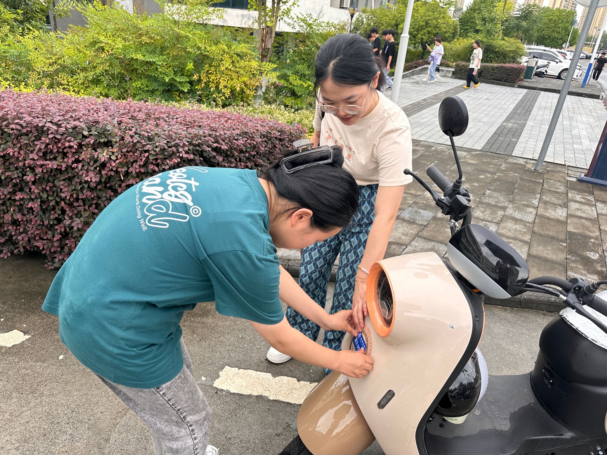 按照学校既定方案,对符合校内行驶要求的532辆电动自行车,专项治理工作小组人员联合各二级学院给予发放安装校内行驶通行标识。