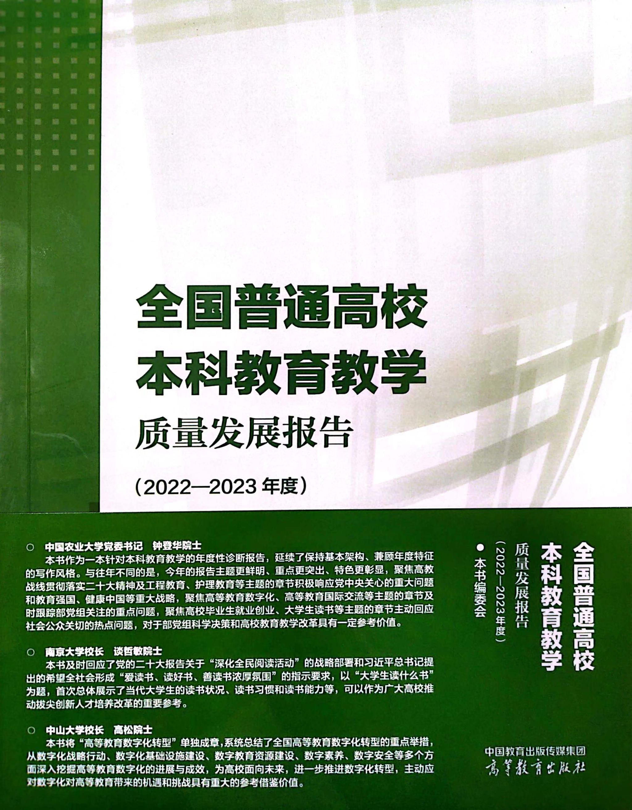 近期,教育部《全国普通高校本科教育教学质量发展报告(2022—2023年度)》由高等教育出版社正式出版。《报告》对2022—2023年度全国1000余所普通高等学校本科教育教学质量进行了分析和研究,系统反映了我国普通高校本科教育教学质量发展状况。我校“1+1+N”合作育人模式作为典型案例被编入《报告》第二章“高校人才自主培养体系日趋完善”中第三节“多样化人才培养稳步推进”。