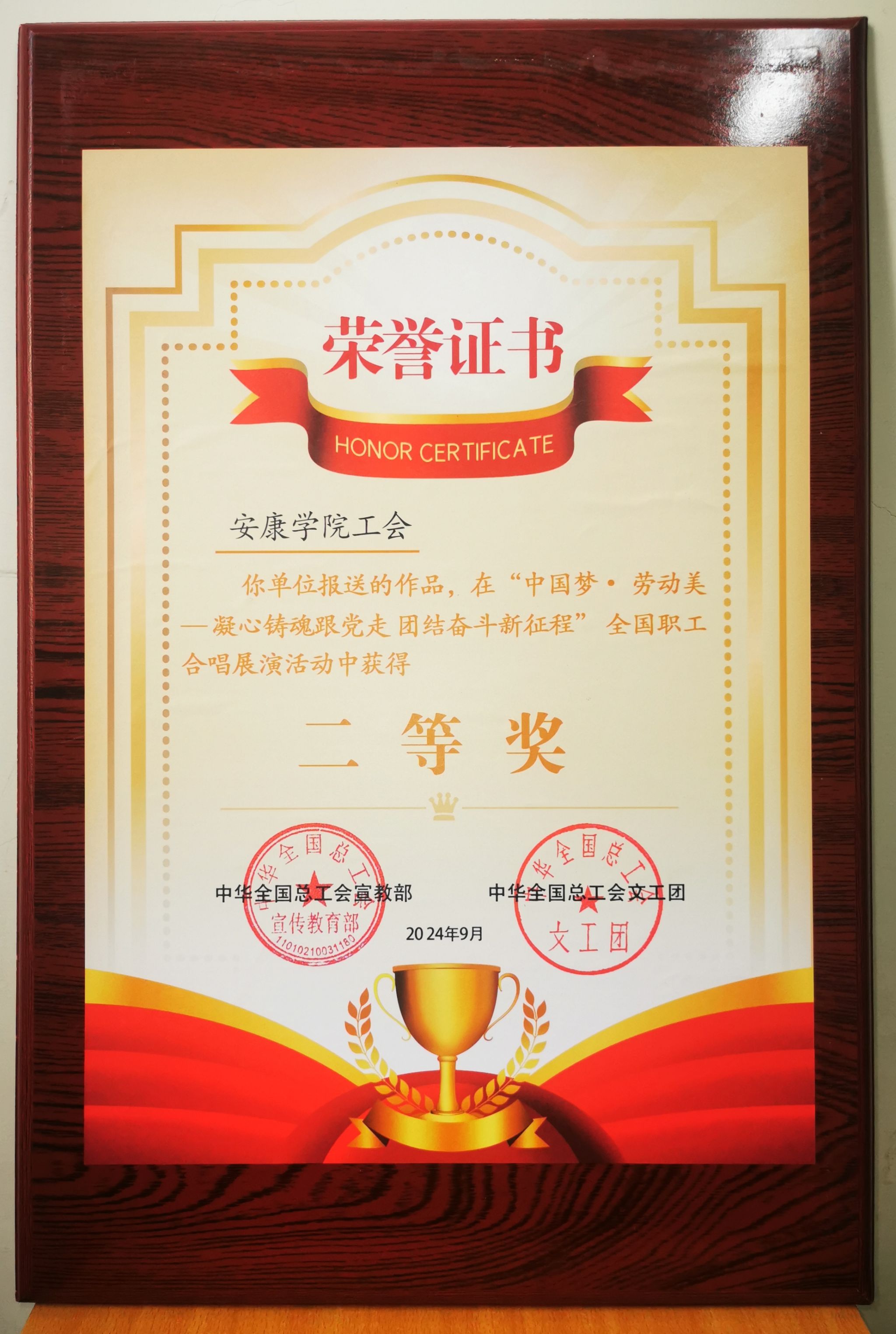 在新中国成立75周年前夕,由全国总工会宣传教育部、浙江省总工会、全总文工团联合主办,浙江省湖州市总工会承办的“中国梦·劳动美——凝心铸魂跟党走 团结奋斗新征程”全国职工合唱展演活动在浙江湖州举行。安康学院合唱团参加现场展演并荣获二等奖。