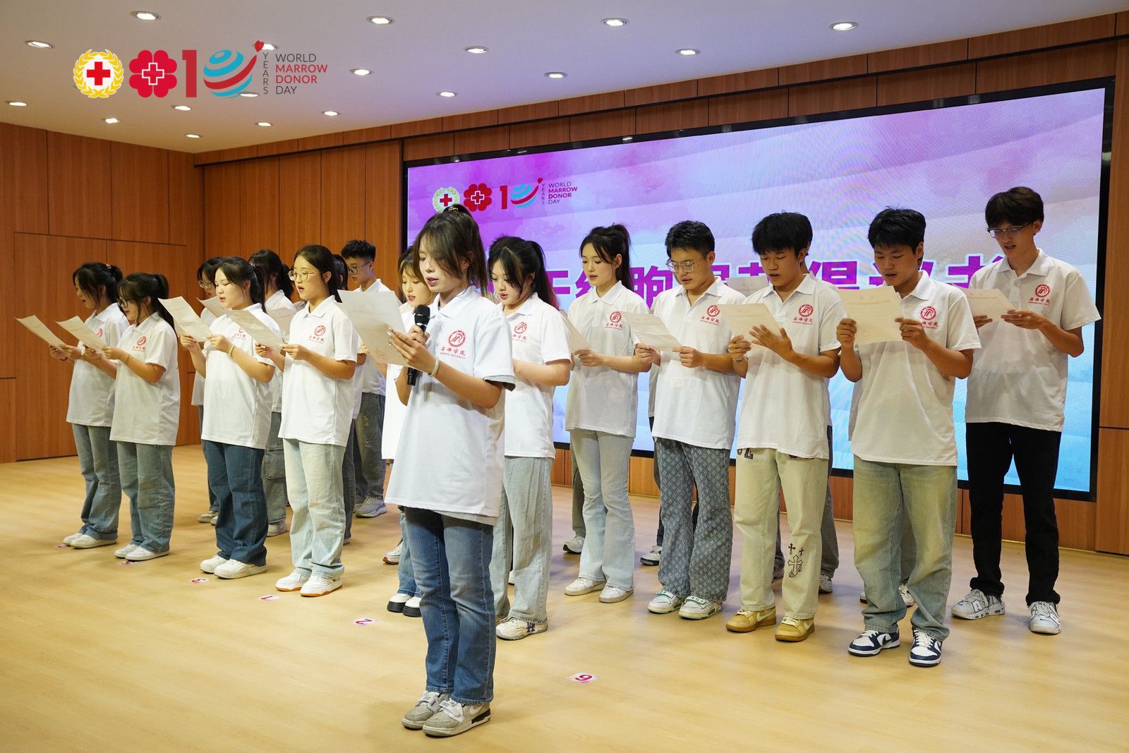 我校艺术学院、教育学院学生带来舞蹈《盛开》、手语舞《感恩的心》,学生志愿者领读造血干细胞捐献倡议书。