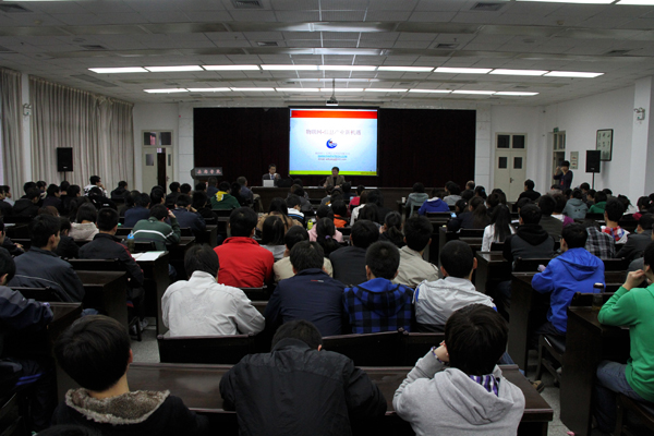杨恒博士介绍物联网产生的背景、技术现状、产业链等情况,分析物联网的关键技术,阐述美国、新加坡等国家物联网技术的发展、应用情况。杨恒博士指出,物联网技术处于发展初期,物联网产业是一个朝阳产业,并且中国物联网技术与世界同步,甚至在许多领域处于世界领先地位,鼓励师生树立信心、积极参与,一定会有所作为。报告会上,杨恒博士还回答了师生的提问。