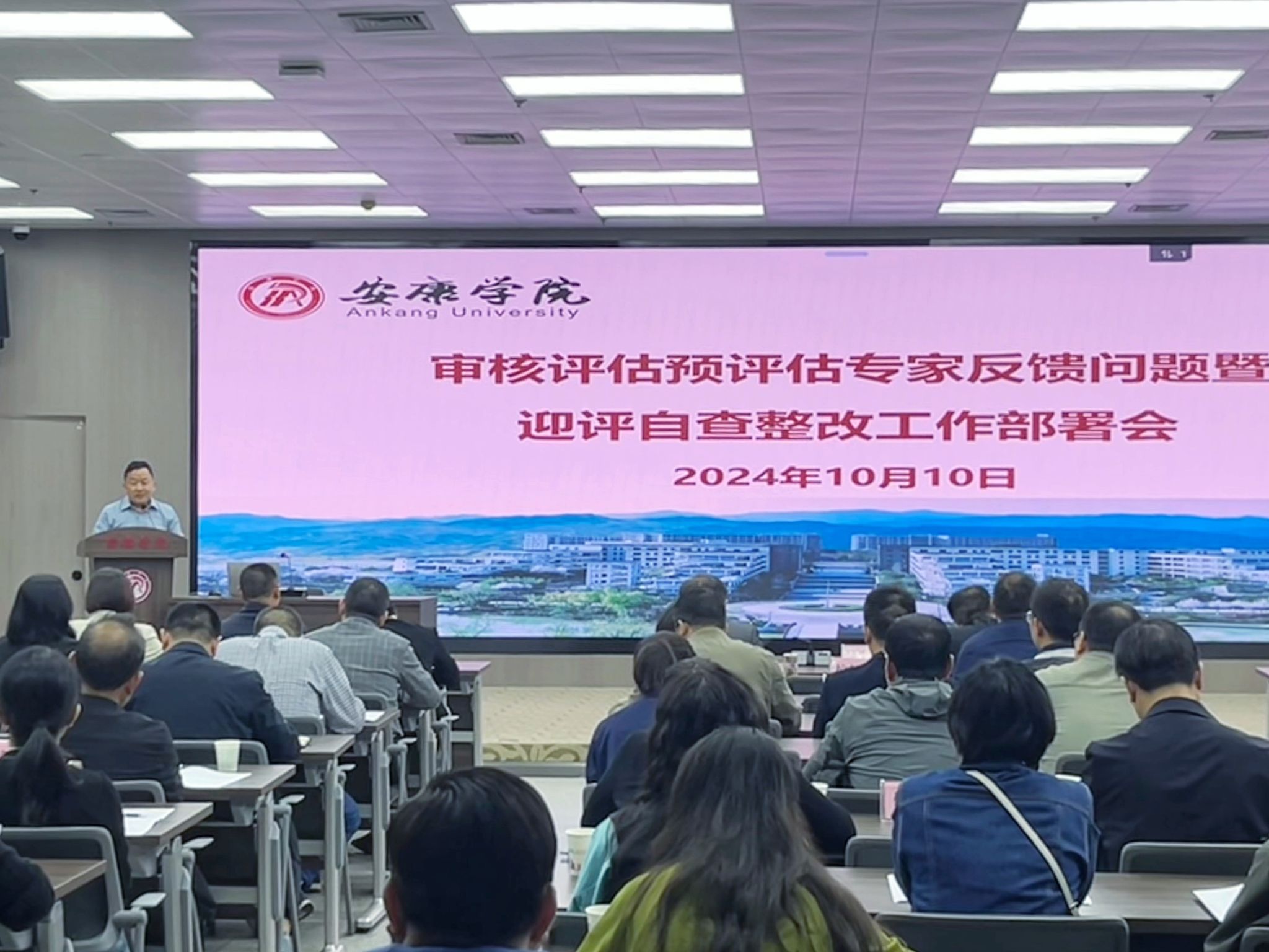 10月10日下午,我校召开审核评估预评估问题反馈暨迎评自查整改工作部署会,学校党委书记、校长钟生海,党委副书记、纪委书记、监察专员安永强,党委副书记余谦,校督导,各职能部门负责人,各二级学院领导班子,学工部、教务处、团委领导班子,专业负责人,系(教研室)主任,实验教学中心副主任,评估办工作人员等186人参加会议。会议由余谦主持。