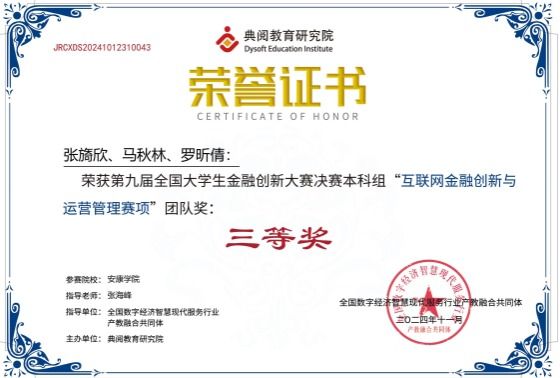 近日,第九届全国大学生金融创新大赛落幕,全国290所高校近3000位选手参加了本次大赛。经过激烈角逐,我校经管学院学生组成的代表队荣获团体三等奖3项、个人三等奖3项;经管学院庞仙君、郑明喆、张海峰三位教师获得优秀指导教师奖。