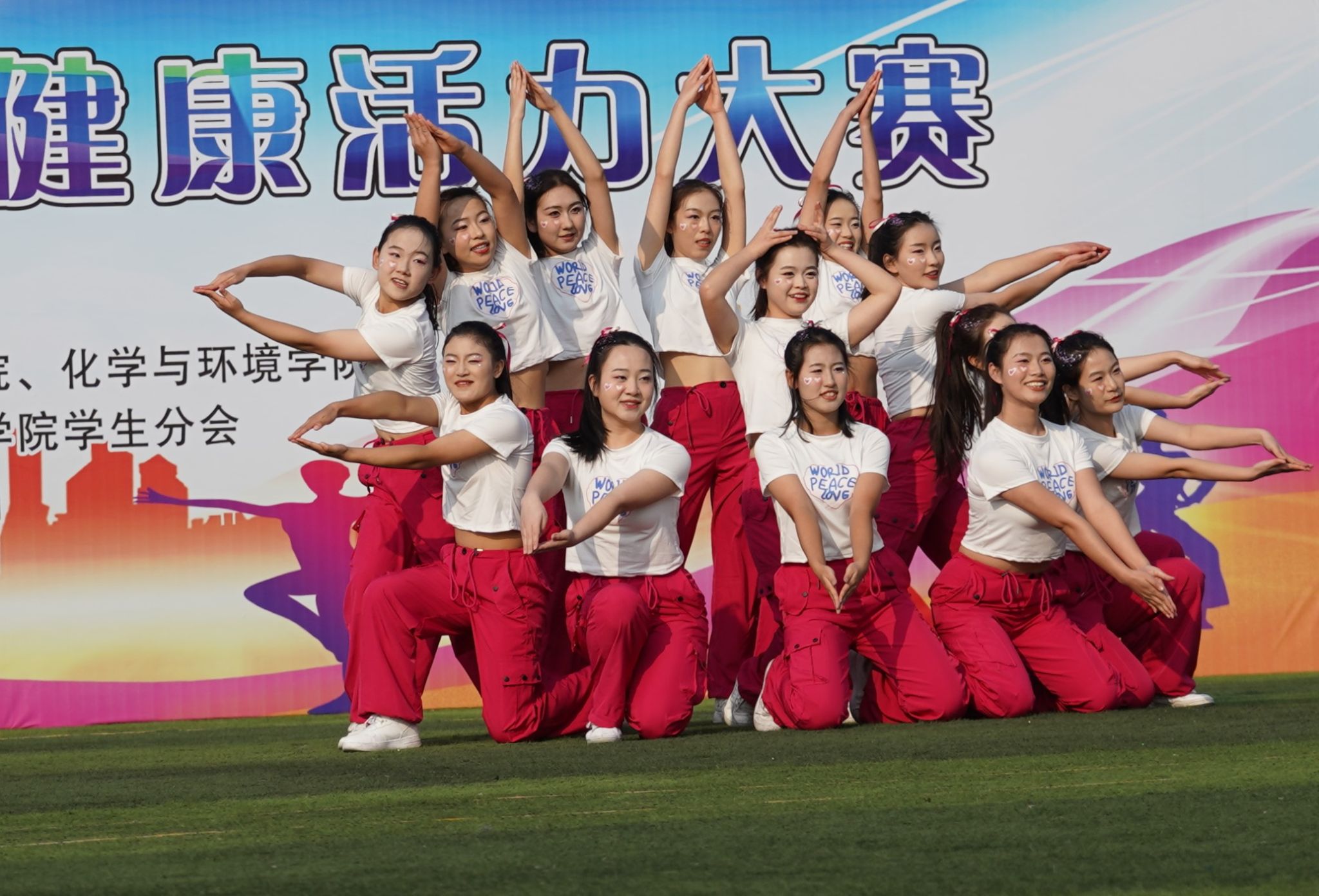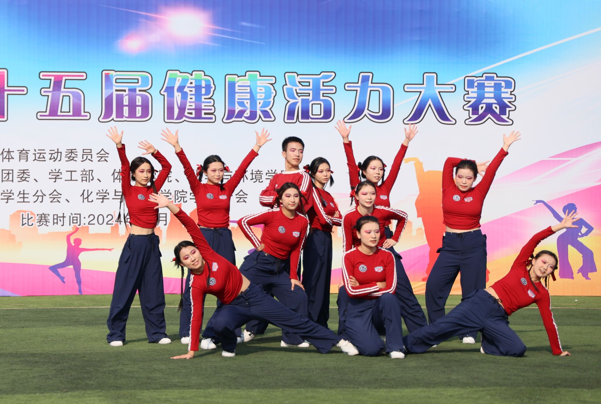 比赛现场,各参赛队一展青春风采,激情飞扬。伸臂、踢腿、旋转、跳跃……参赛选手们踏着音乐节拍,活力起舞,时而变换队形,时而做出托举、人塔、空翻、抛接等高难度技巧动作,创意十足的表演赢得观众阵阵喝彩。