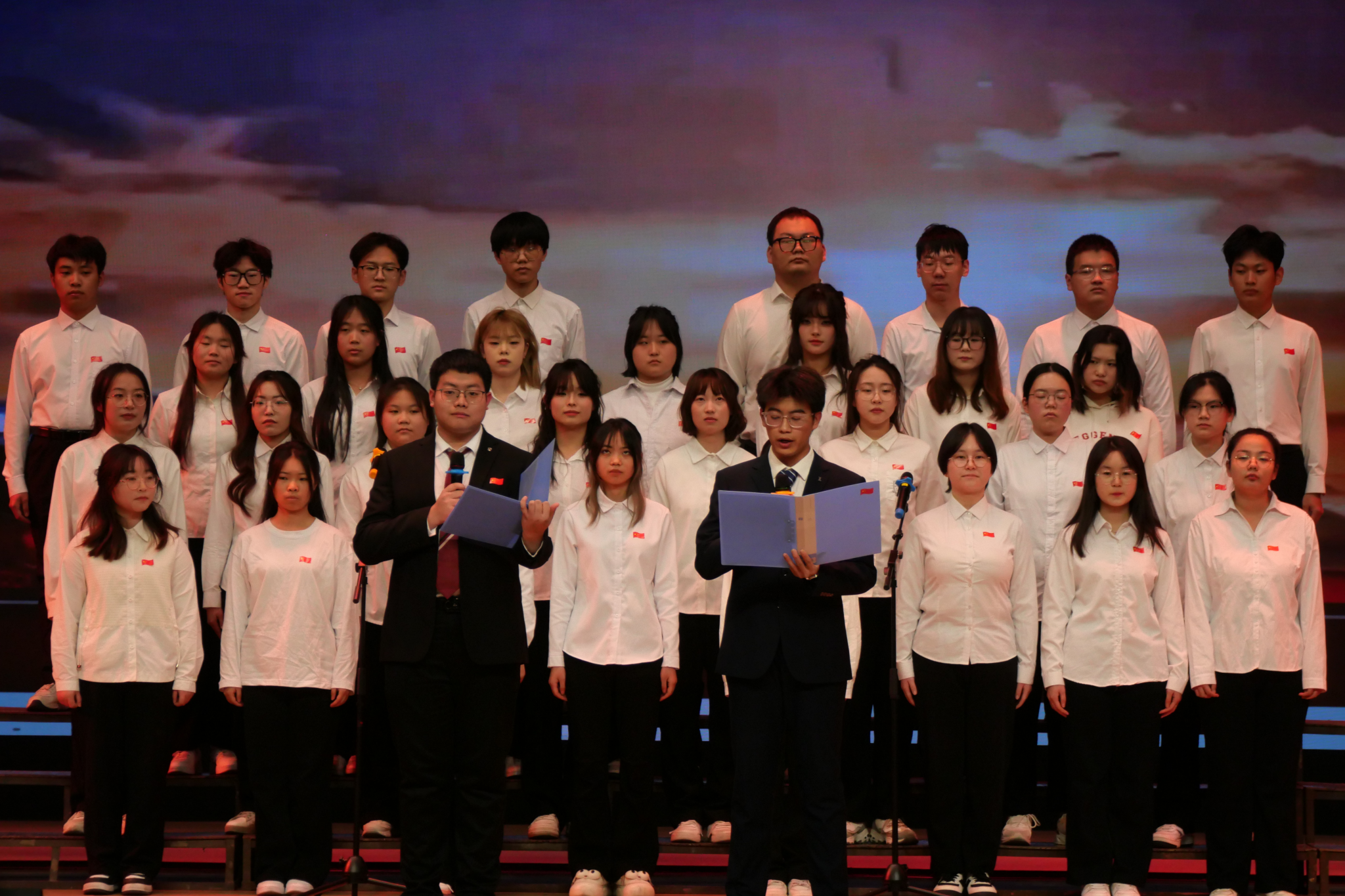 12月15日晚,文学与传媒学院在江南校区大礼堂成功举办了主题为“红歌激扬,青春向党”的合唱比赛。校团委、文传学院相关教师担任比赛评委。