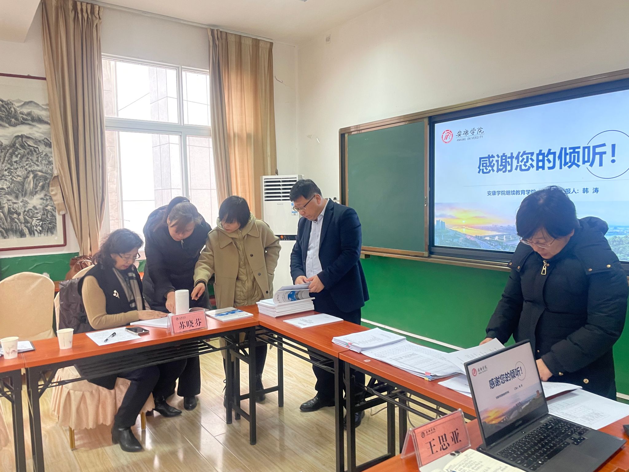 李春杰介绍了2024年陕西省“国培计划”“省培项目”视导的目的及工作安排。韩涛对我校2024年“国培计划”“省培项目”申报立项、项目推进与实施、典型经验、特色亮点、存在问题及改进措施等方面进行了全面汇报。专家组通过查阅资料、场地考察、座谈交流等方式,详细了解了我校2024年“国培计划”“省培项目”实施的具体情况。