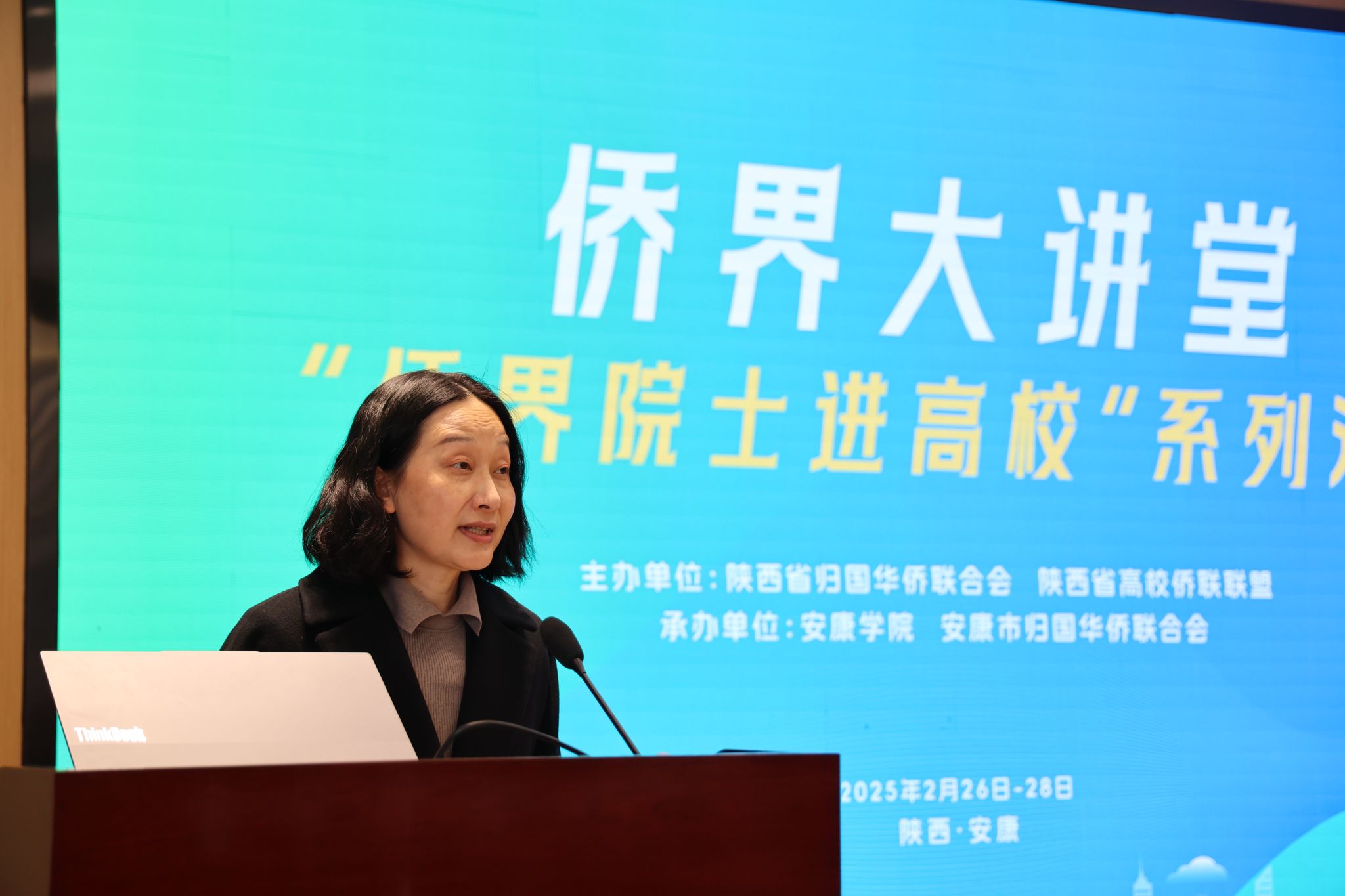 锁志海在讲话中指出,“侨界院士进高校”是陕西高校侨联联盟为陕西留学归国人员、侨界青年学者提供优质服务的一项品牌活动,希望通过此次活动,为安康学院青年学者提供宝贵的灵感源泉、学术指引及广阔发展空间;陕西高校侨联联盟也将进一步加强内部合作,推动侨务工作与高校发展深度融合,促使地方和高校侨务工作从简单相加迈向深度协同。